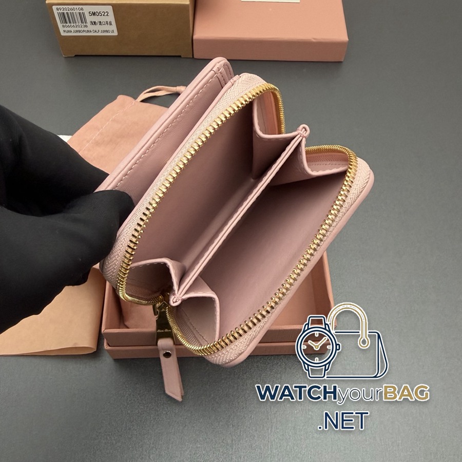 MiuMiu MATELASSÉ Sheep Leather Short Zipper Bag Wallet This wallet cleverly creates a 3D effect with unique textures and is decorated with a metal lettering logo to fully display the brand style. The spacious interior is equipped with card slots and compartments, highlighting functionality. Snap closure Metal engraved logo One bill compartment Eight card slots Two internal pockets Zippered two internal compartments, Sheepskin lining Number: 5MO522 Caramel/Imported Sheepskin Dimensions: Width 10.2cm x Height 9.5cm