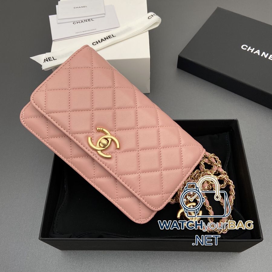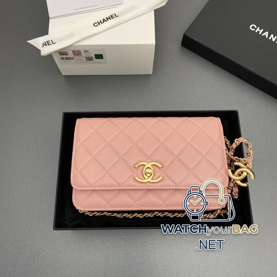 Xiaoxiang imported Italian lambskin 25Bwoc double C snap button adjustable chain, fashionable, classic and timeless Item number: AP3938 Size: w19×h12×d4.5cm Color: pink sheepskin gold hardware