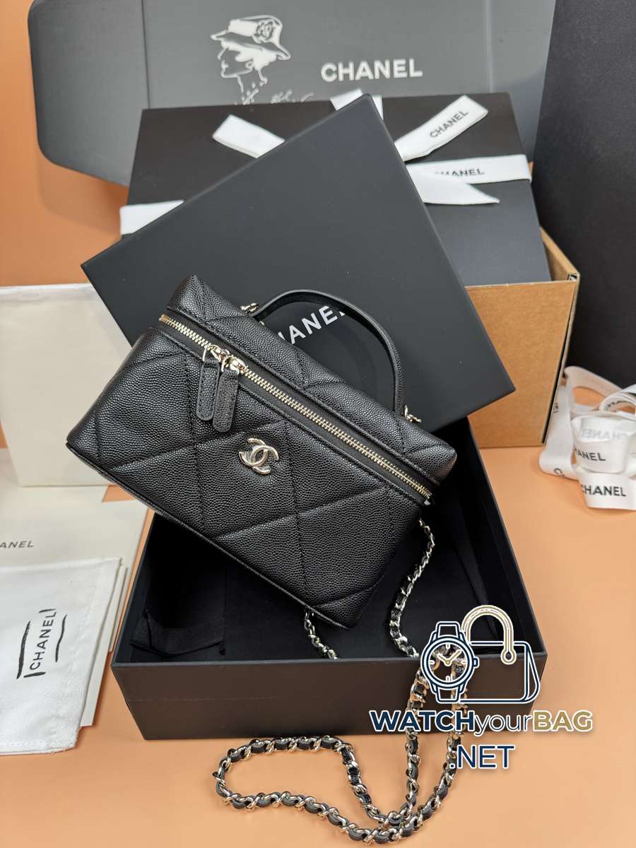 The 25K large diamond lunch box bag series combines fashion and classics and will never go out of style. Leather: Original imported black fine ball grain calfskin Hardware: Light gold hardware Size: w19.5×h17×d5cm Model: AP4936 black light gold box packaging