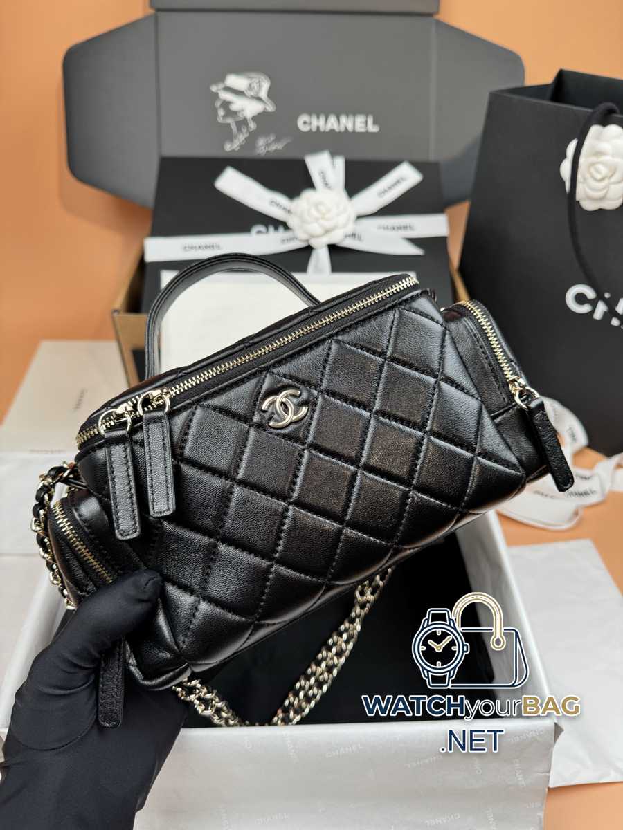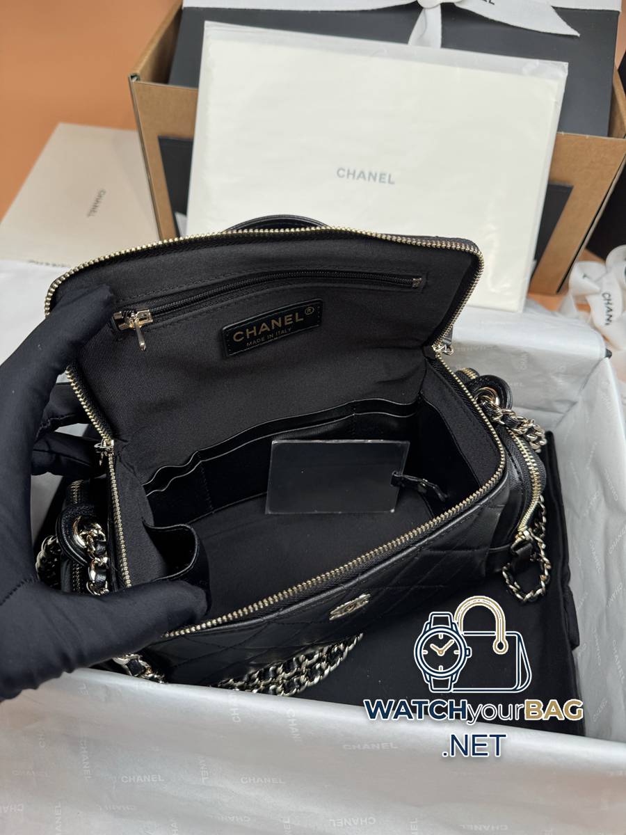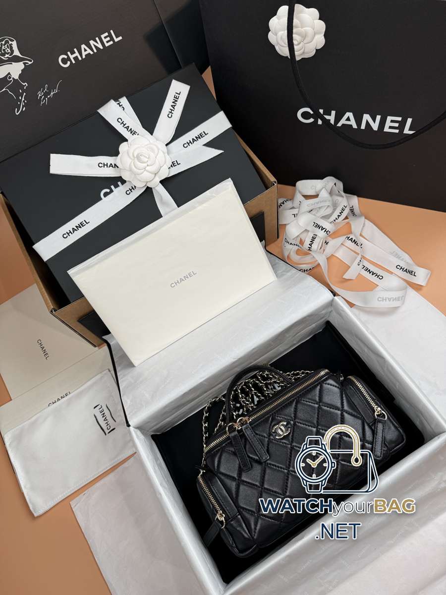 24K bowling camera bag combines fashion and classics, never goes out of style, soft and comfortable to the touch. Leather: imported black sheepskin Hardware: light gold hardware Size: w23×h13×d9cm Model: AS5222 black sheepskin light gold complete package