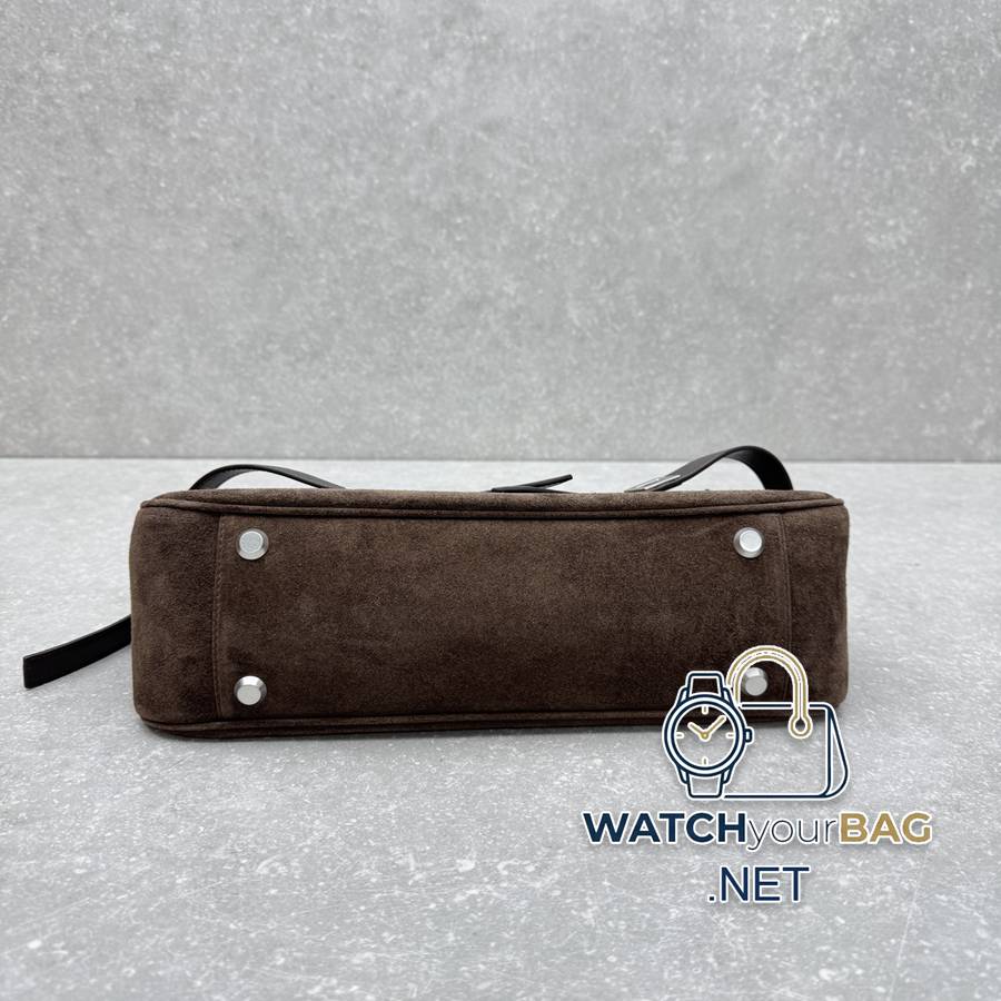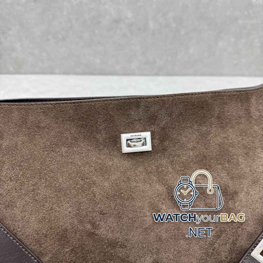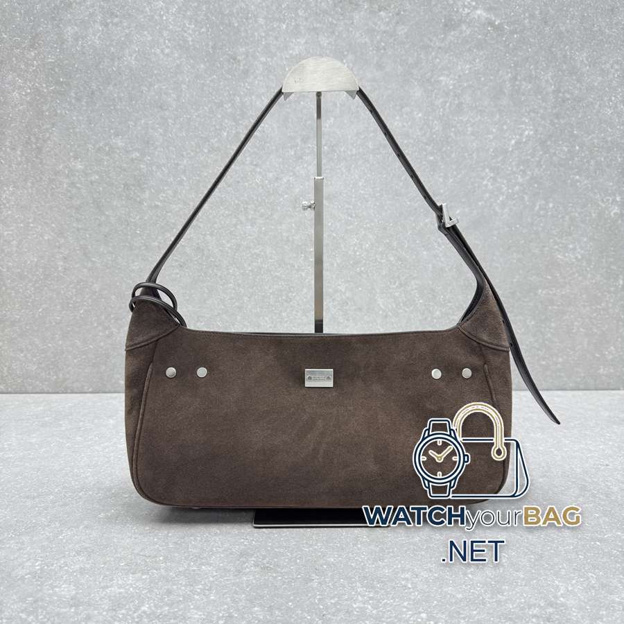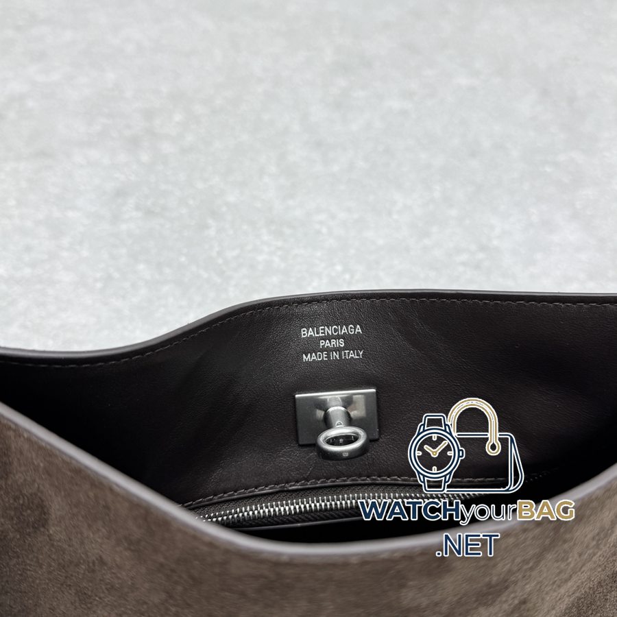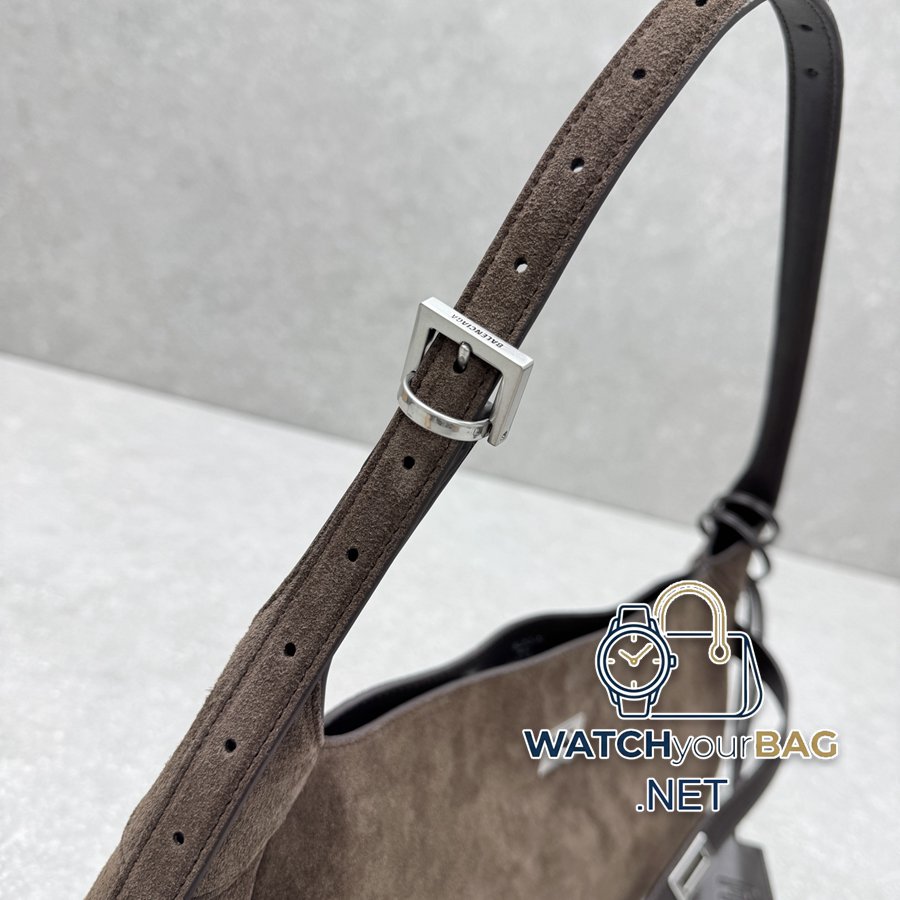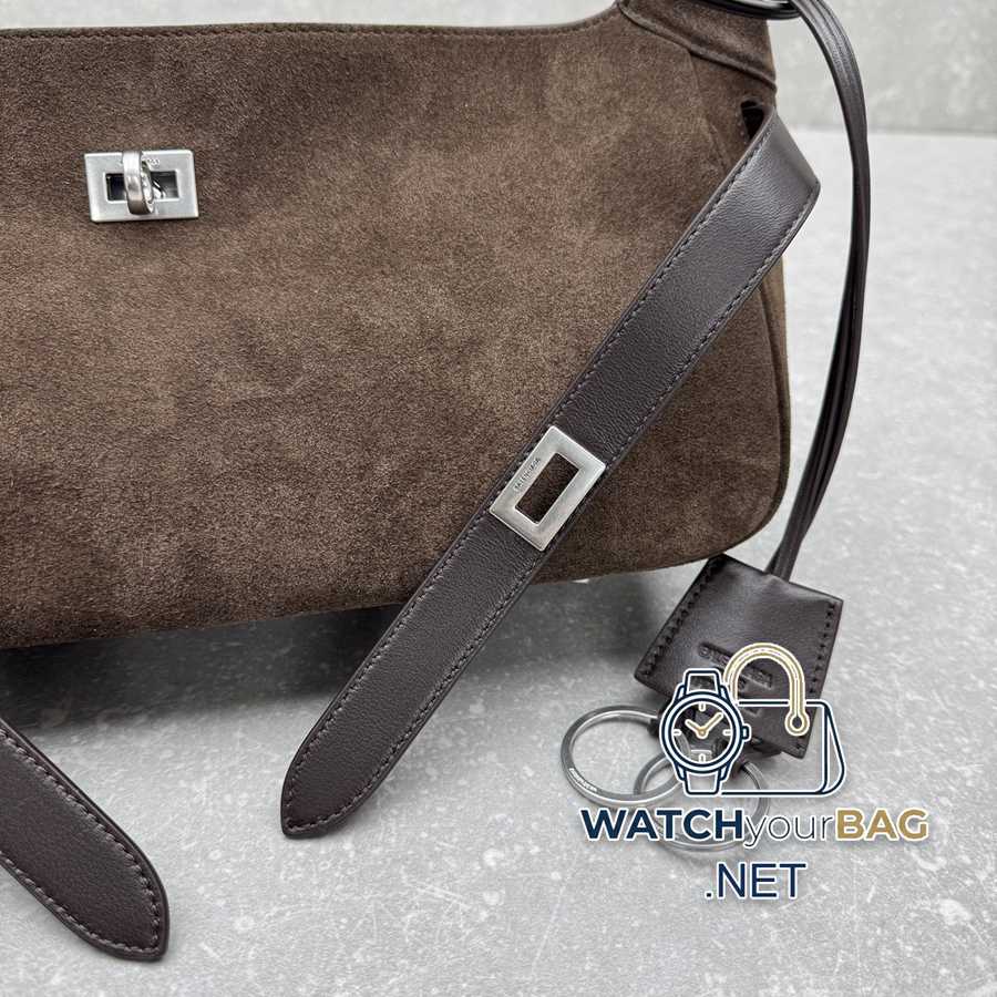 {Small/Matte Brown}The design of Balenciag^Bel Air horizontal armpit bag Demna is always so bold! The suede leather armpit bag with square buckle hardware is full of retro style. It is made of suede material and the leather straps hang down casually. The conflict is strong and wonderful, making the bag more unique and definitely a secret weapon in the fashion industry! Style number: 92876 Small size: bottom length 36×bottom width 10×height 17cm