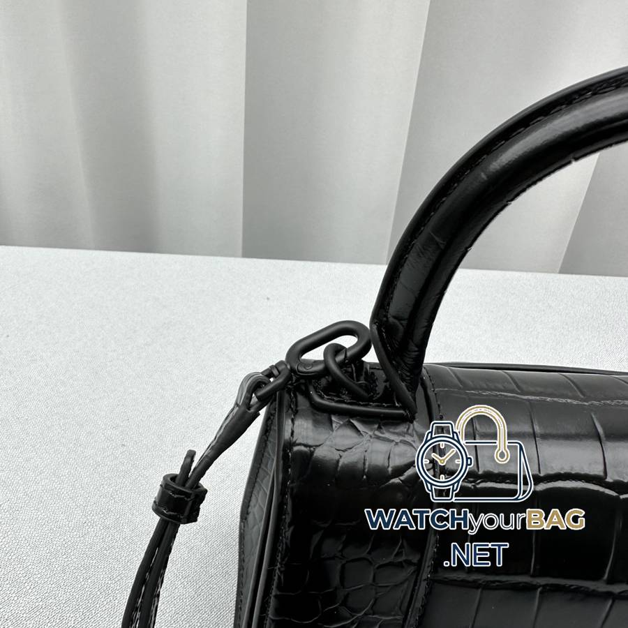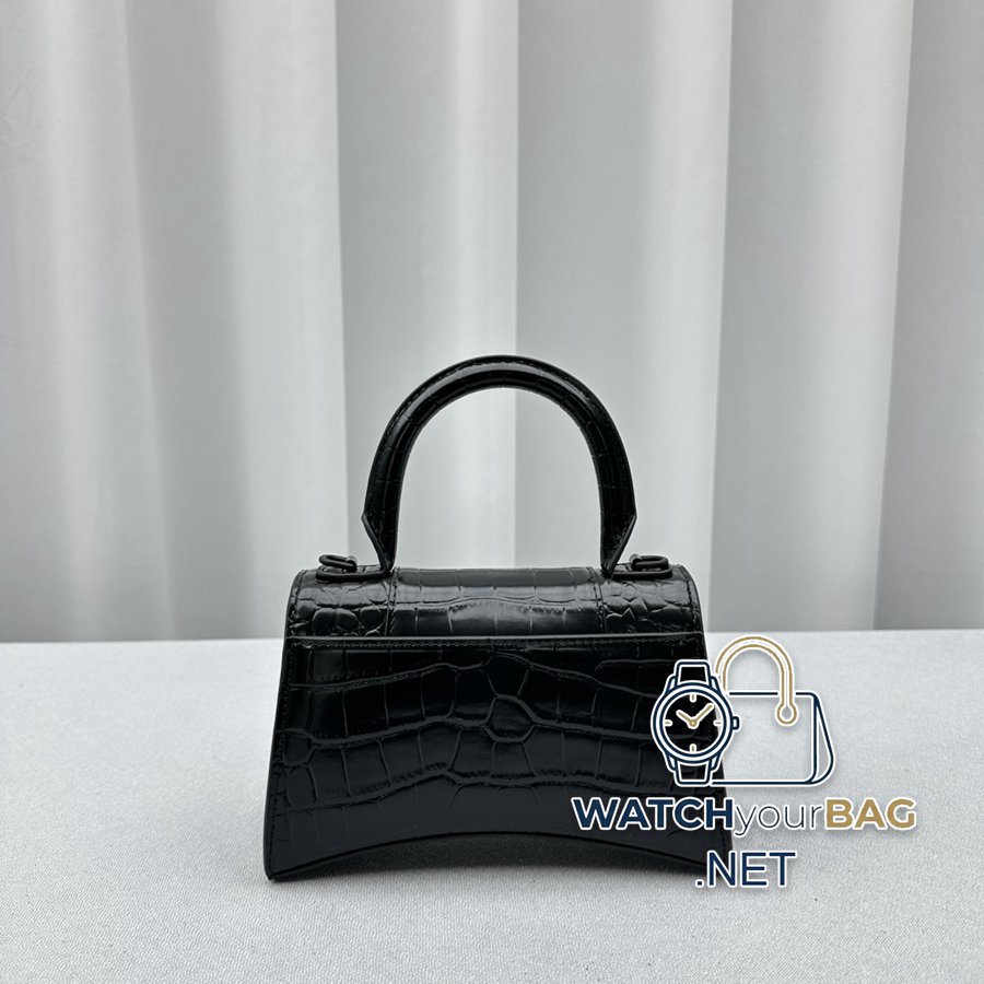 {Little crocodile black} Balenciag α launches the handsome Hourglass crocodile pattern hourglass bag in the new season. The unique iconic arc shape has a rounded and smooth arched arc at the bottom. It is unique in shape and can also prevent the bottom of the bag from being scratched and worn. The appearance is in the shape of a half-moon, with a metal B-shaped pull ring. The crocodile pattern cowhide texture is also very touching and classy! Hot item recommended buy! 92940 Crocodile pattern: Large size: 23x10x24cm Small size: 19x8x21cm