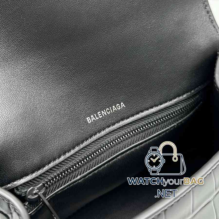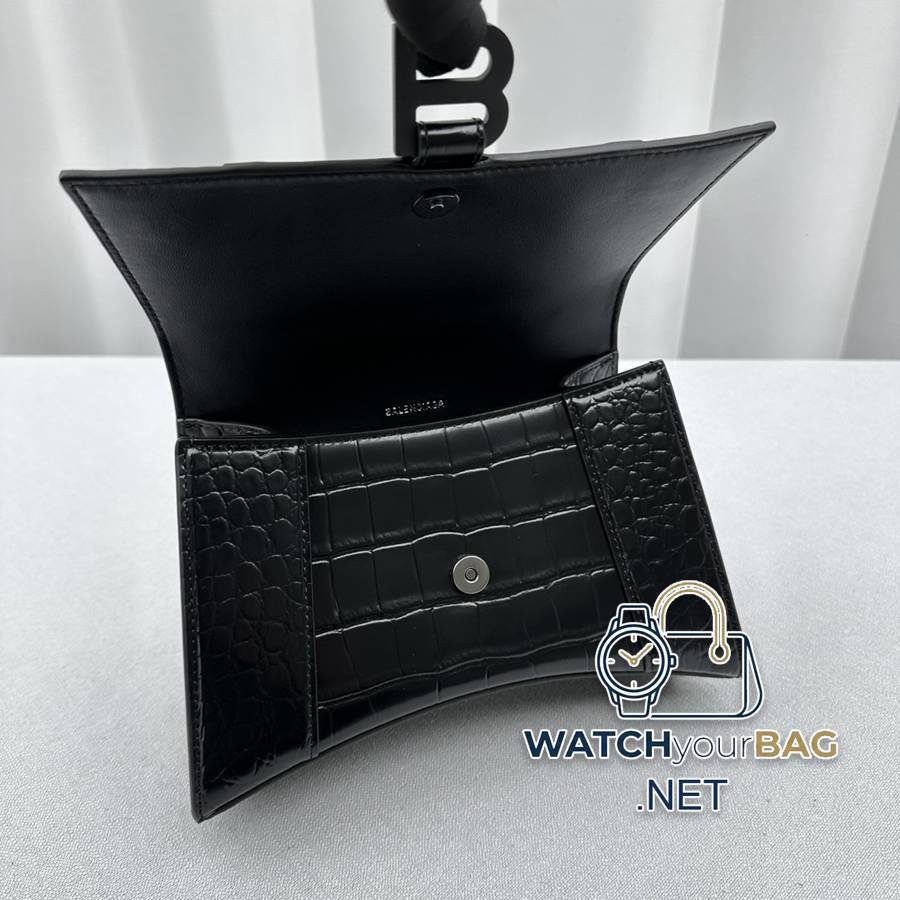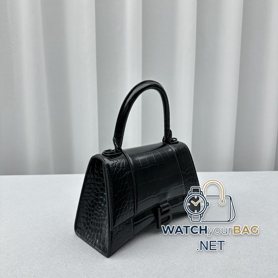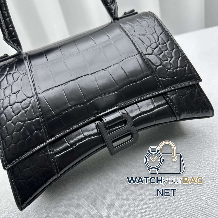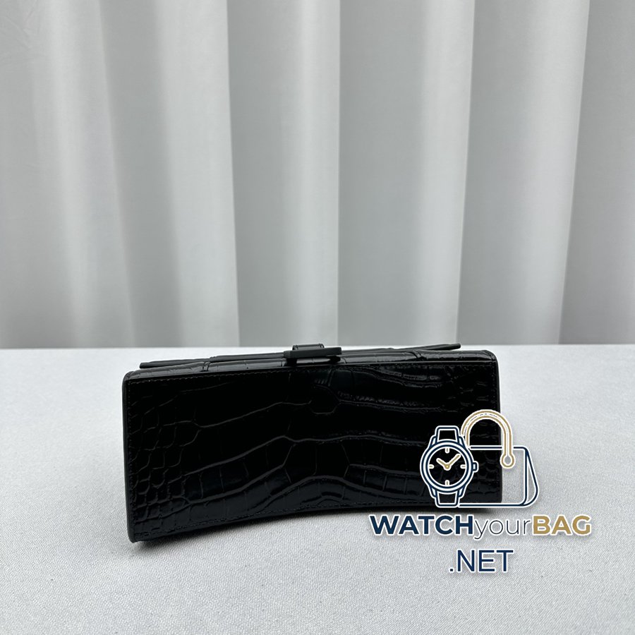{Large crocodile black} Balenciag α launches the handsome Hourglass crocodile pattern hourglass bag in the new season. The unique iconic arc shape has a rounded and smooth arched arc at the bottom. It is unique in shape and can also prevent the bottom of the bag from being scratched and worn. The appearance is in the shape of a half-moon, with a metal B-shaped pull ring. The crocodile pattern cowhide texture is also very touching and classy! Hot item recommended buy! 92940 Crocodile pattern: Large size: 23x10x24cm Small size: 19x8x21cm