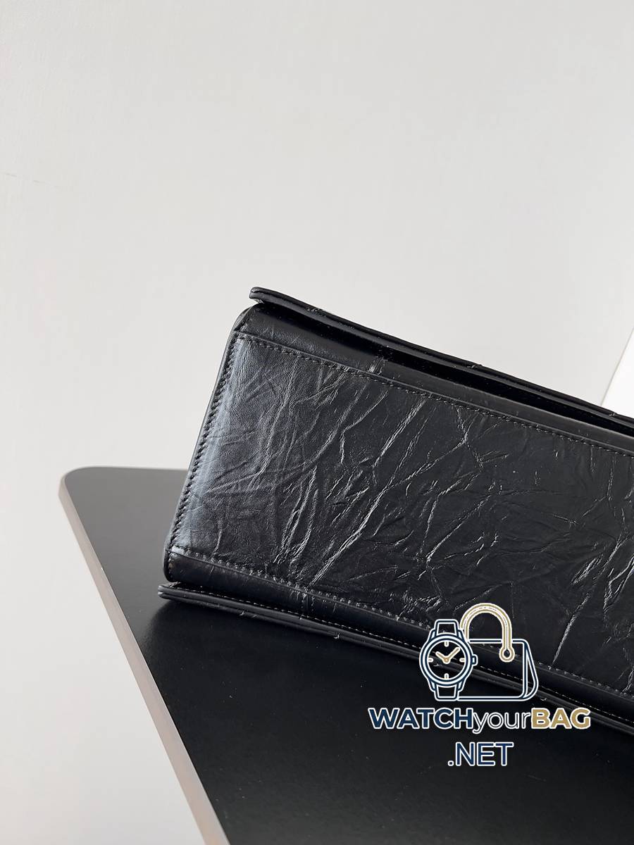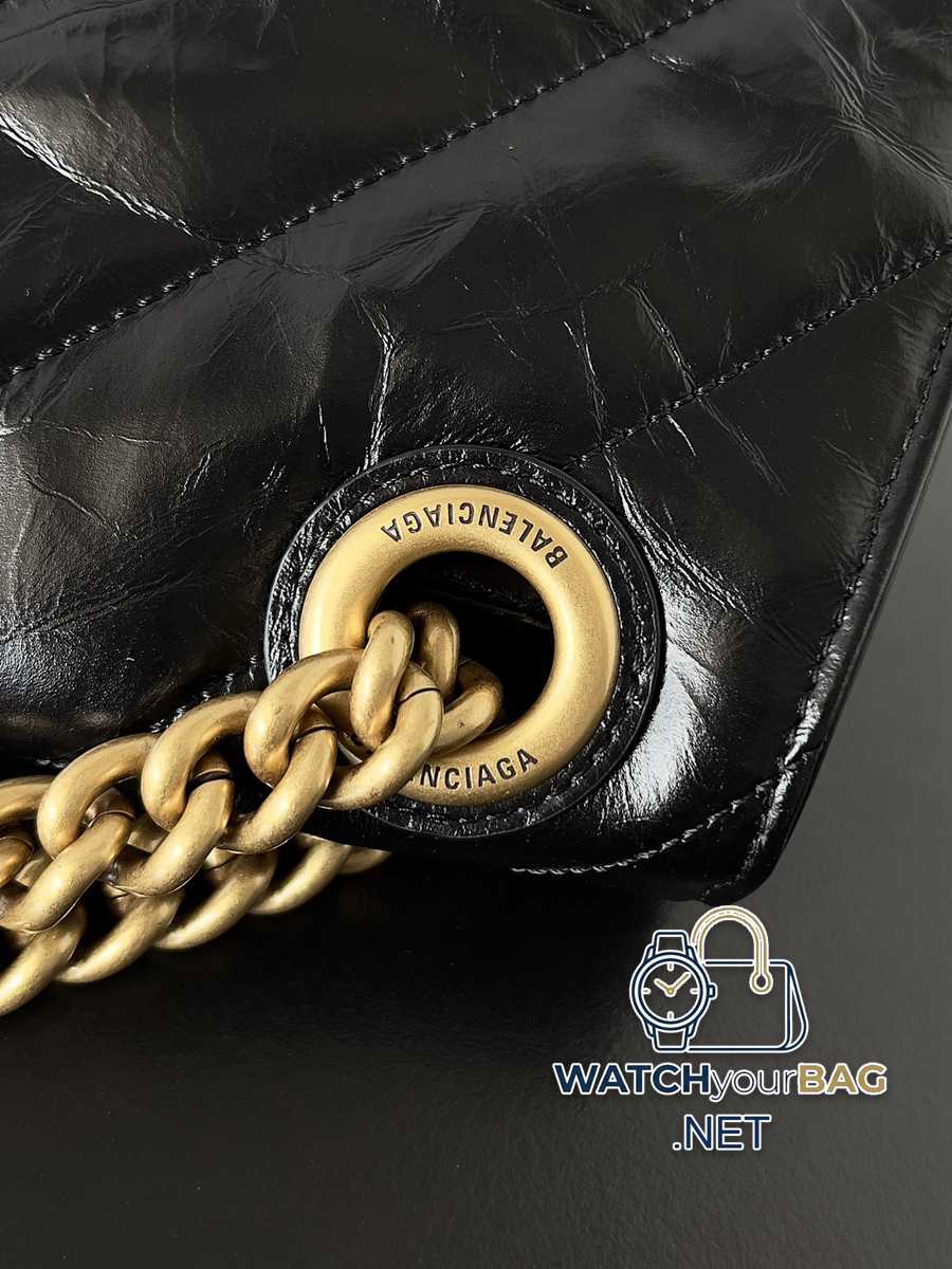 Original leather Balenciaga crush chain bag ⛓️⏳Classic hourglass silhouette yet as soft as a pillow, with an aged origami texture that is rolled into a ball and unfolded, making it durable and versatile for everyday use. The crush bag reinterprets the classic with a deconstructed approach. The bag body continues the arched bottom and sharp edge design, removes the handle, and retains the B buckle. The chain can be passed through the loop and folded in half to be used as a handbag or armpit bag, or it can be adjusted into a single chain to be used as a shoulder bag or crossbody bag. There are four ways to carry a bag. Style number: 92885 Size: 39.924.913.0