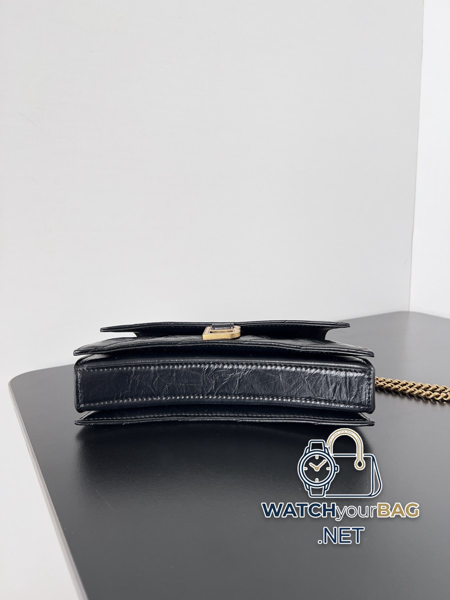 Original leather Balenciaga crush chain bag ⛓️⏳Classic hourglass silhouette yet as soft as a pillow, the texture of aged origami that is rolled into a ball and unfolded is durable and versatile for everyday use. The crush bag reinterprets the classic with a deconstructed approach. The bag body continues the arched bottom and sharp edge design, removes the handle, and retains the B buckle. The chain can be passed through the loop and folded in half to be used as a handbag or armpit bag, or it can be adjusted into a single chain to be used as a shoulder bag or crossbody bag. There are four ways to carry a bag. Style number: 92885 Size: 21.89.94.8cm