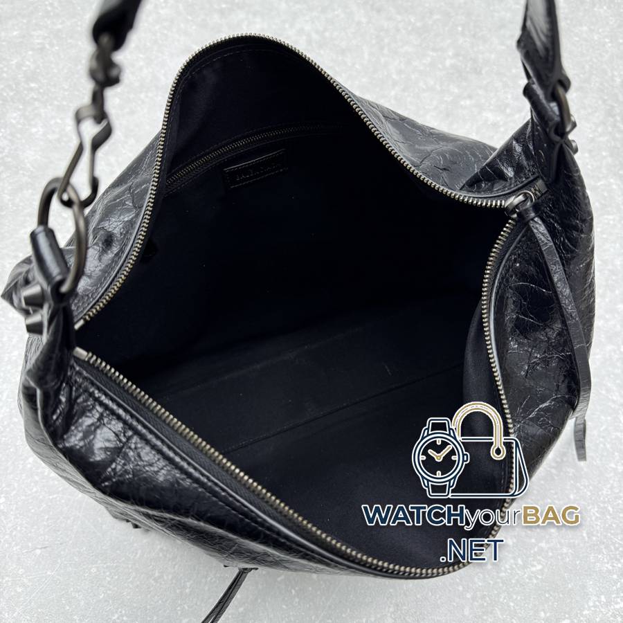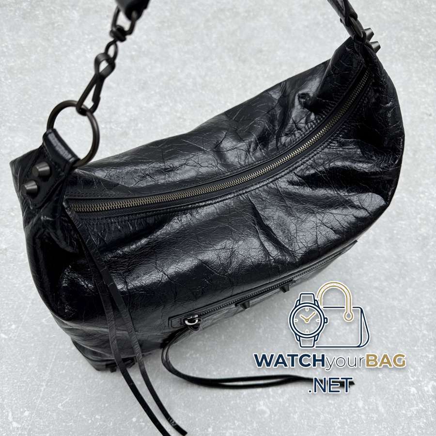 {Large Size/Oil Wax Black} The handbag brings a “cool atmosphere” to the classic hobo motorcycle bag. It incorporates some elements of the motorcycle bag, but also adjusts the characteristics of the original motorcycle bag, breaking away from outdated ingredients to create this large-capacity motorcycle hobo. It is lightweight and super large-capacity, and can be carried on the shoulder with a casual and relaxed feeling. Whether it is for daily street use or a concave style, it can make you stand out in the crowd in one second! Style number: 92545 Large size: length 37×width 11×height 35cm