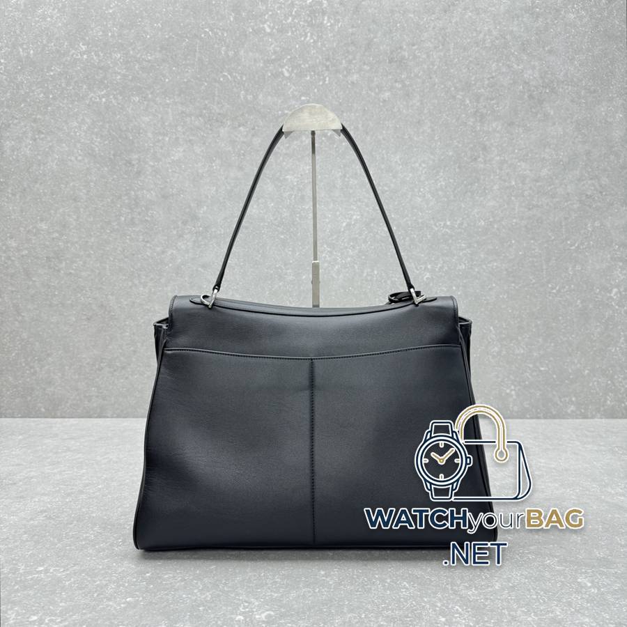 Large size/black silver}^24ss show style handbag kelly in balenciag! The simple and smooth lines and low-key luxury style are so eye-catching! The black tone is calm yet fashionable, and the gold fasteners add a bit of luxury to the details~ You can easily blend it into your outfit by carrying it casually~ This appearance directly circles the style number: 92866 Large size: bottom length 40x height 30x width 13cm