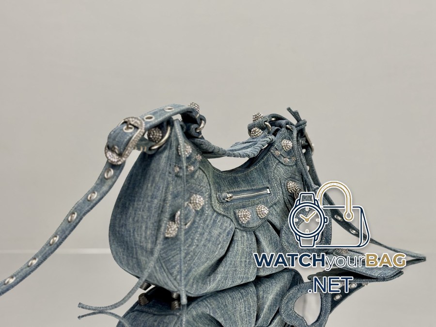 Ready Stock<Large Size Denim>Balenciaga Le Cagole Moon Bag Which hot girl would refuse Balenciaga’s denim! Love it! Crazy excited! Denim denim elements, paired with Bling Bling’s imported rhinestones! Just like Y2K, it can be worn cross-body under the arm ~~ It also comes with a small mirror pouch, and the details are perfect! Like, like, like! Style number: 701 denim large size: length 33 x height 16 x width 8.4 cm