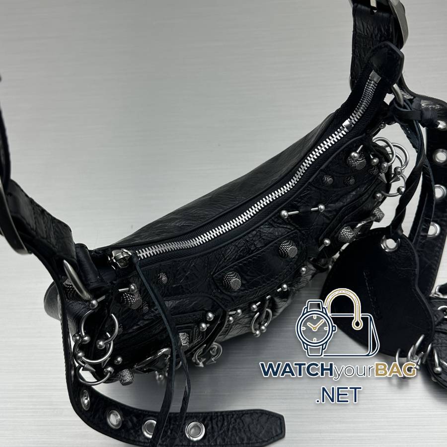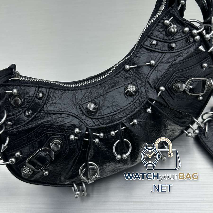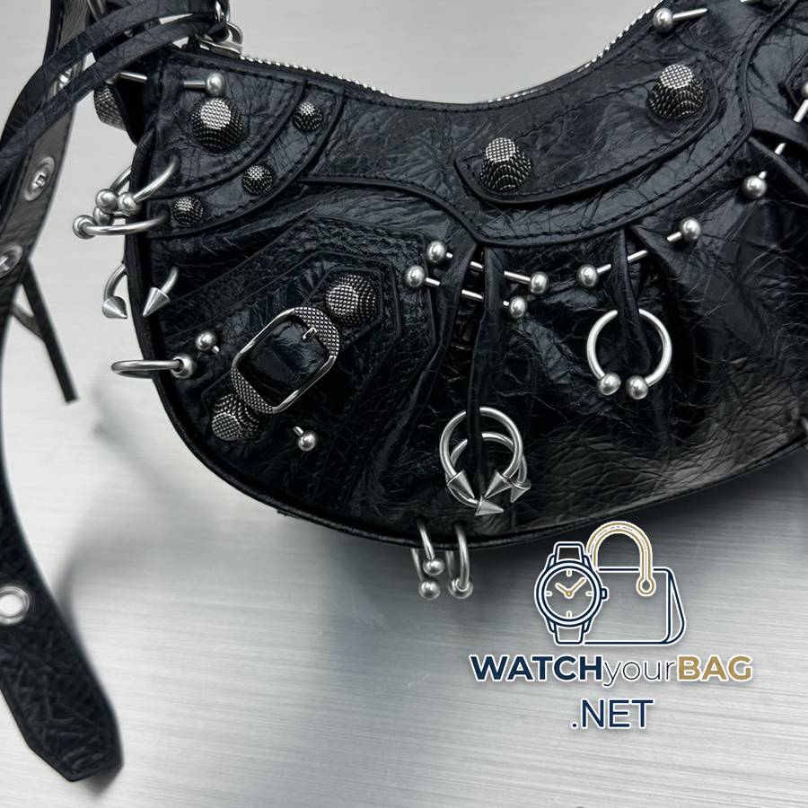 Balenciag Le Cagole Crescent Bag Limited Edition Rebellious Rivets Create a Contrast Cute Millennial Hot Girl Bag Penetrating Cool Rivets Motorcycle Bag, Adjustable Woven Shoulder Strap with Additional Eyelets and External Leather Card Holder, Heart-shaped Hanging Mirror ♡ Inheriting the classic motorcycle elements Small and exquisite design, full of high-end feeling and super casual atmosphere! Style number: 92718 Small size: length 26X height 16X width 9.9cm