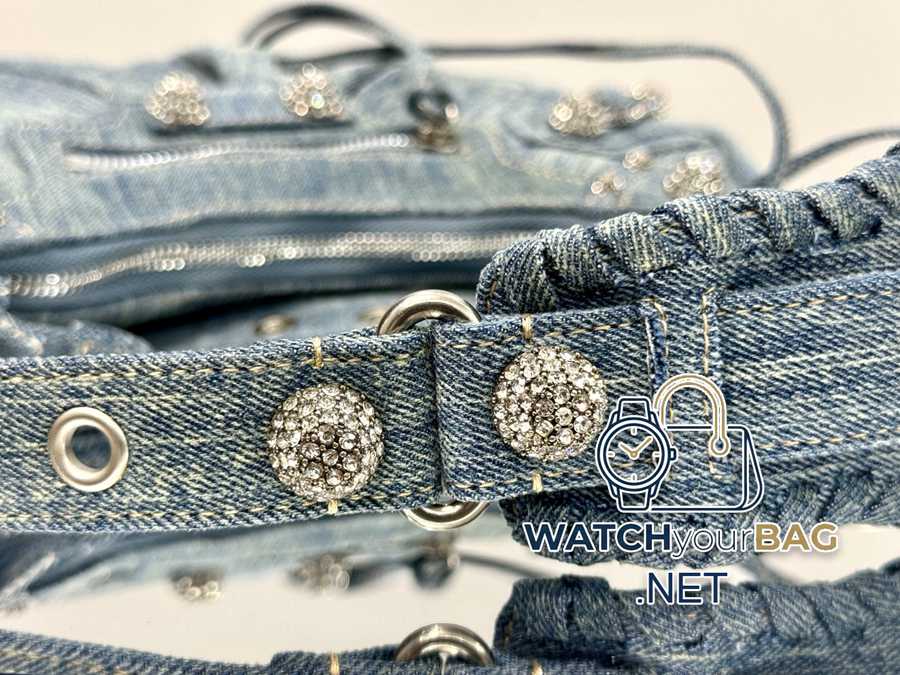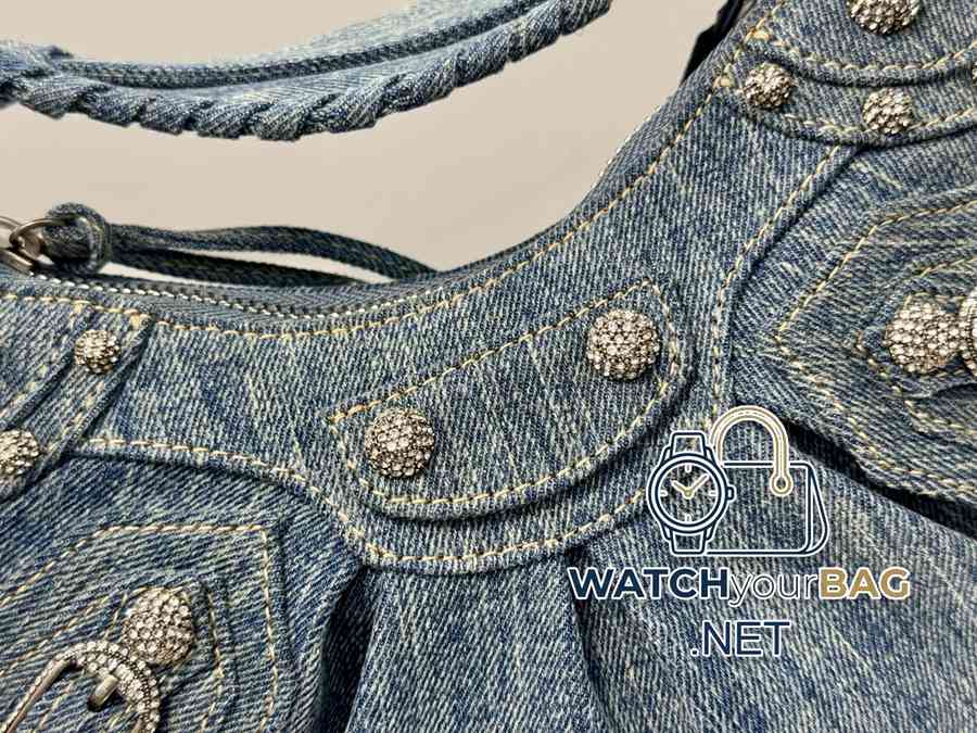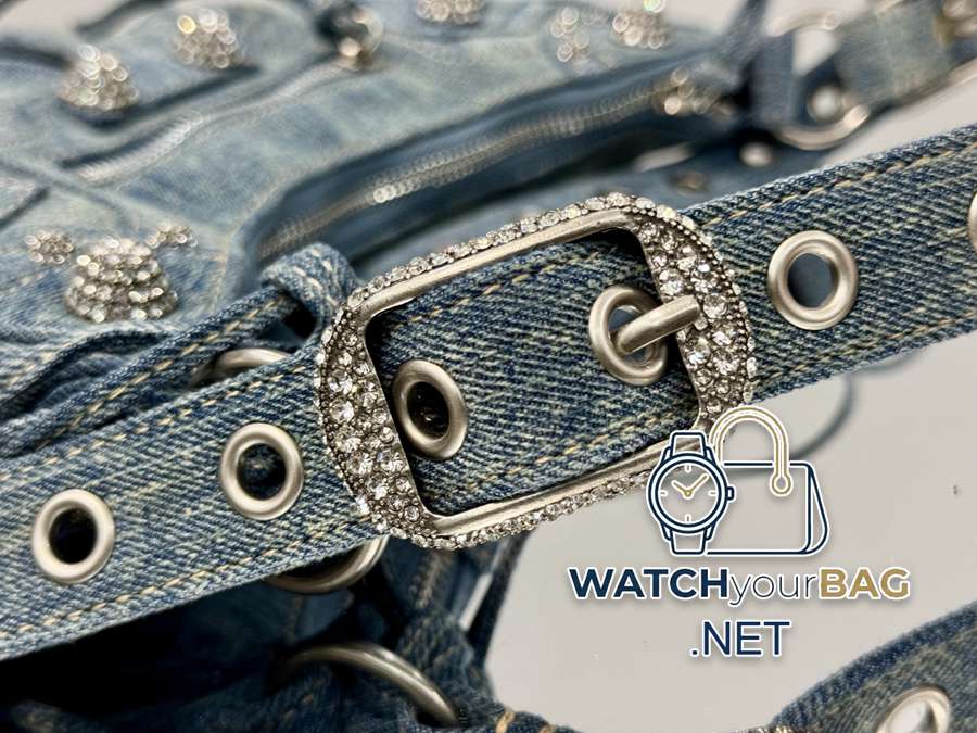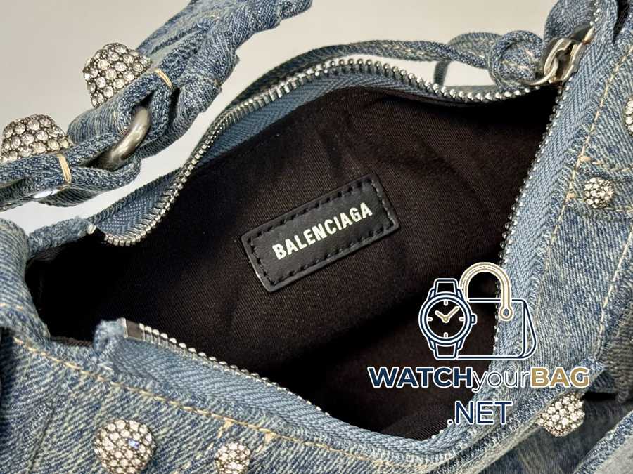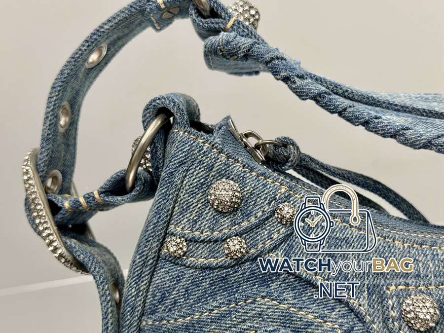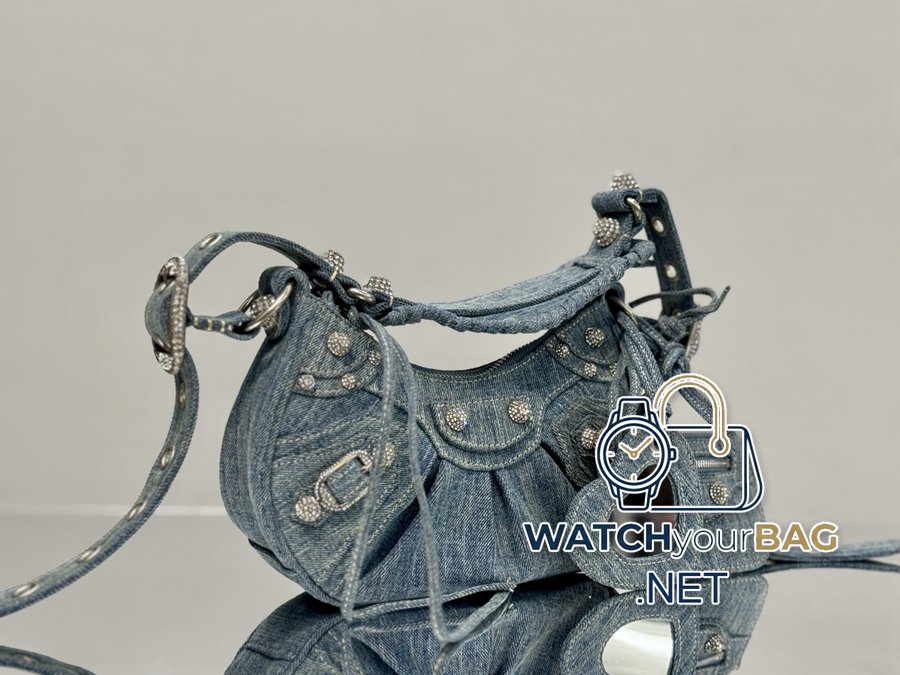 In stock<Small size denim>Balenciaga Le Cagole moon bag Which hot girl would refuse Balenciaga’s denim! Love it! Crazy excited! Denim denim elements, paired with Bling Bling’s imported rhinestones! Just like Y2K, it can be worn cross-body under the arm ~~ It also comes with a small mirror pouch, and the details are perfect! Like, like, like! Style number: 701 denim small size: length 26X height 16X width 10CM