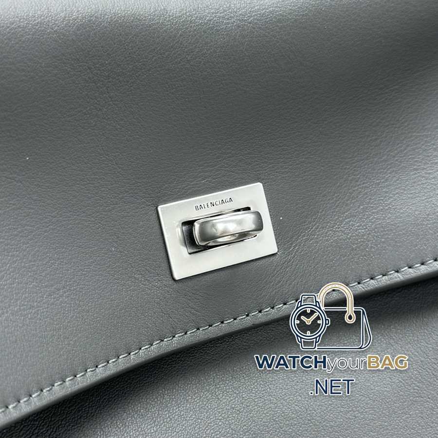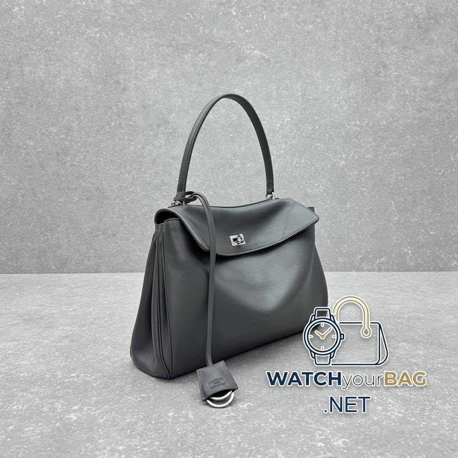 New color {medium/grey silver} 24ss show style handbag kelly in balenciag! The simple and smooth lines and low-key luxury style are so eye-catching! The black tone is calm yet fashionable, and the gold fasteners add a bit of luxurious texture to the details~ You can easily blend it into your outfit by carrying it casually~ This appearance directly circles the style number: 92866 Medium size: bottom length 35x height 23x width 11cm