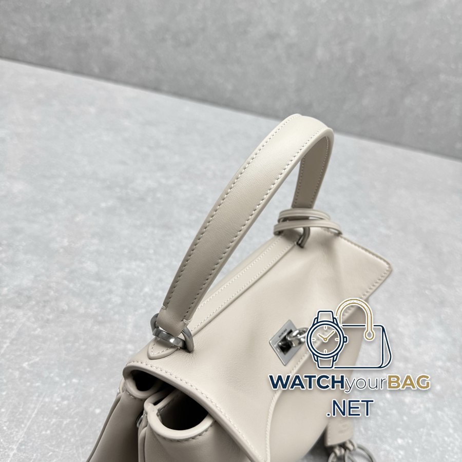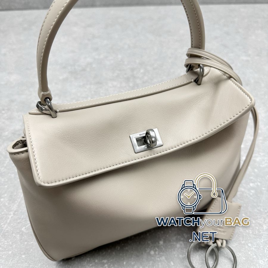 New color {Mini/Almond}^ Kelly in 24ss show style handbag balenciag! The simple and smooth lines and low-key luxury style are so eye-catching! The black tone is calm yet fashionable. The gold fasteners add a bit of luxurious texture to the details. You can easily blend it into your outfit by carrying it casually. This appearance directly makes you circle the style number: 92866. Mini size: bottom length 23x height 10x width 18cm.