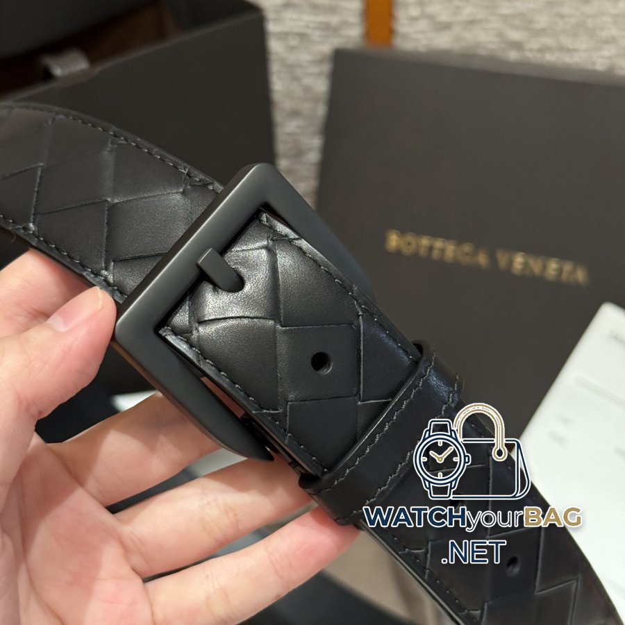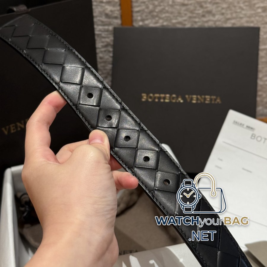 BV intrecciato woven belt is an enlarged version of the intreccio woven belt, with a smooth leather backing and a metal pin buckle. It is made of cow leather and is very versatile. Width 3.5cm