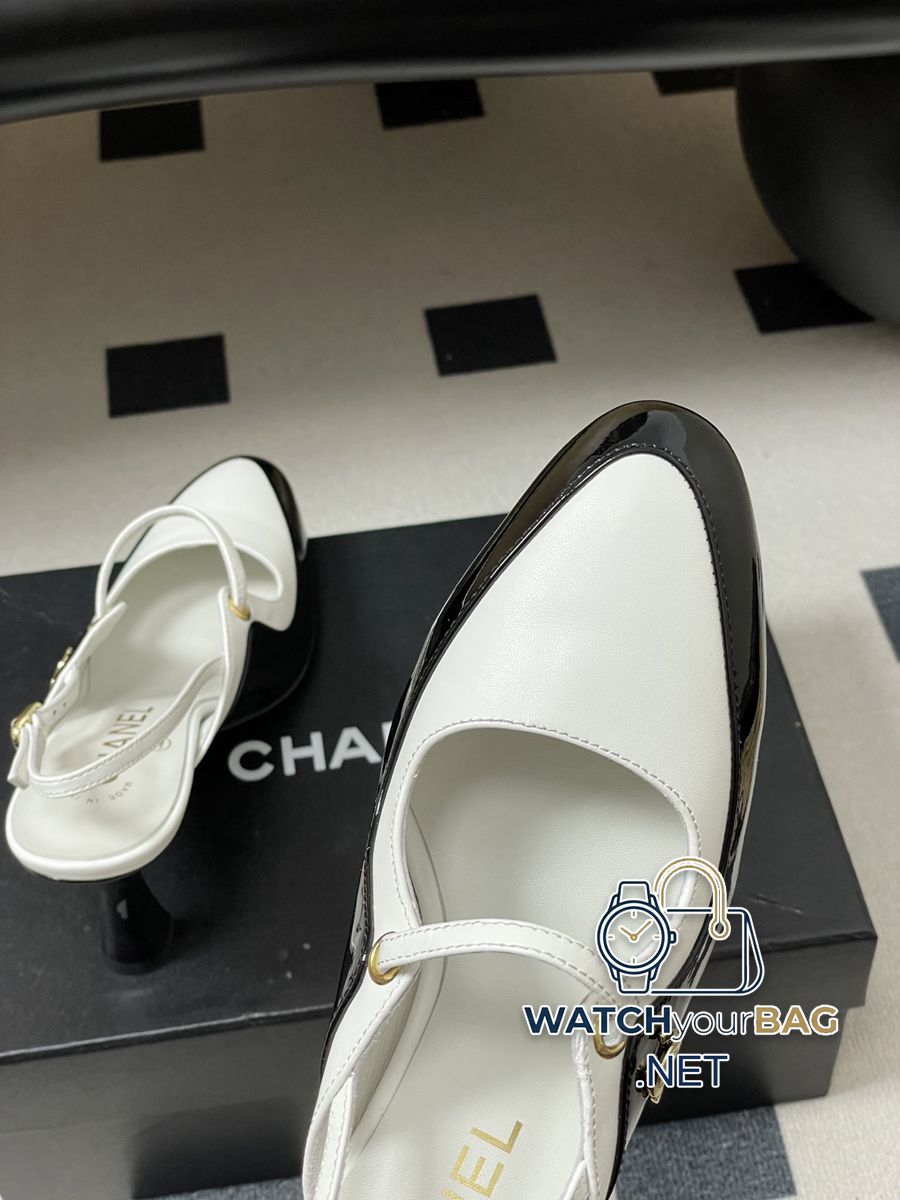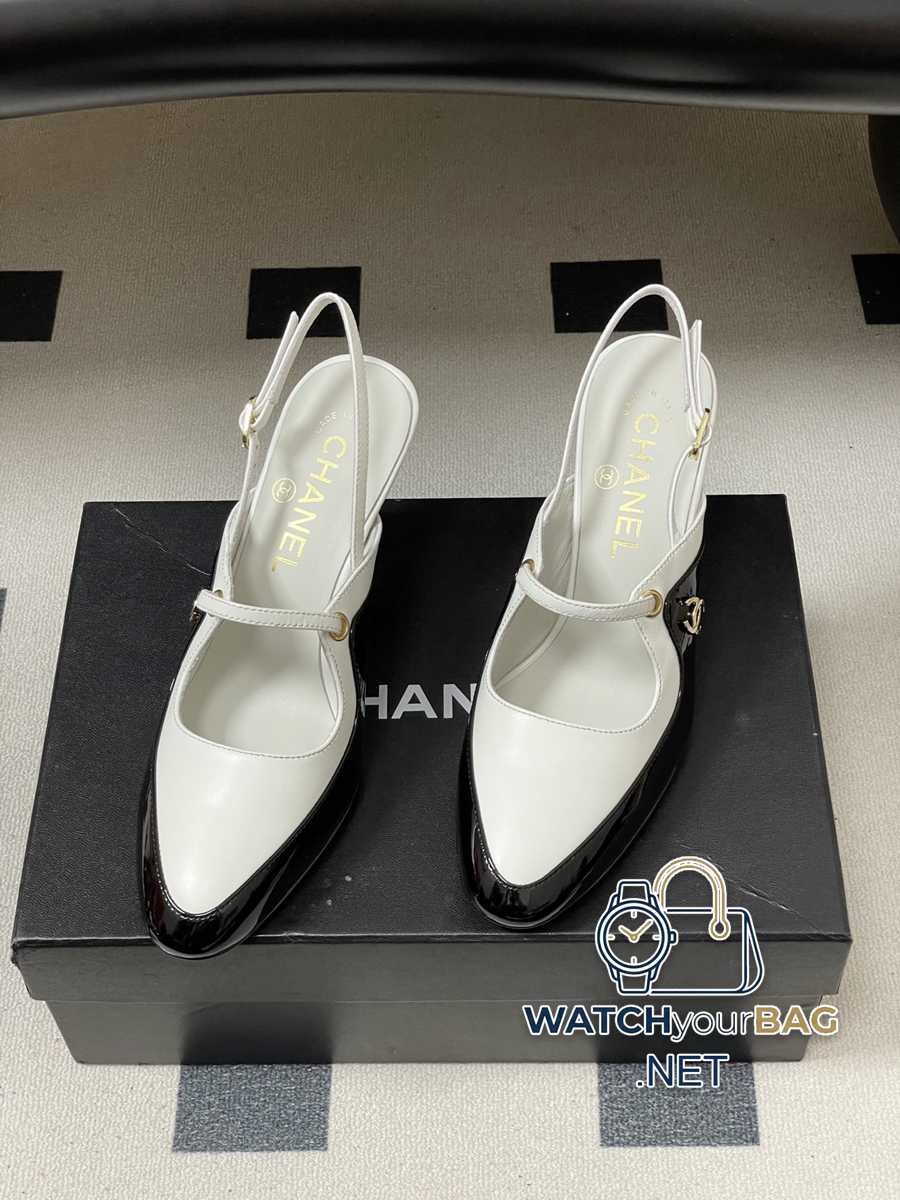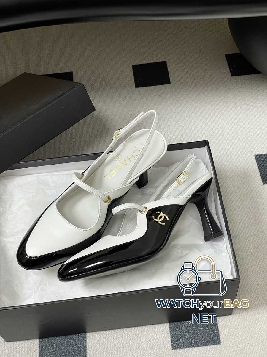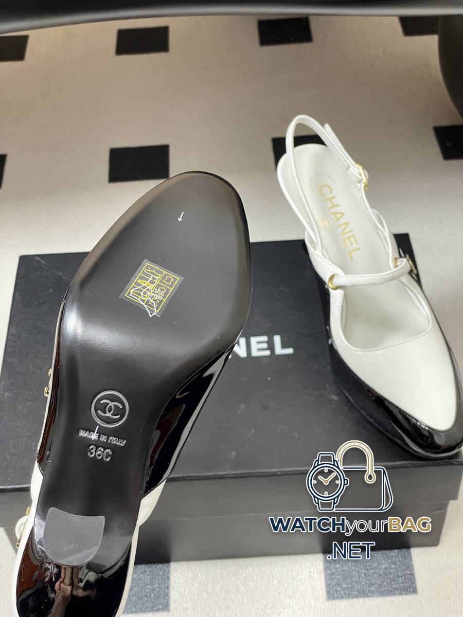 Chanel 2026 Spring and Summer New Style catwalk style classic double C buckle back empty sandals round toe color-blocked high-heeled sandals adopt a classic and elegant design style, while incorporating fashion elements, with both retro and modern feel, suitable for various occasions. The shoe body has a classic double color combination. This color is not only luxurious and eye-catching, but also visually brightens the skin tone, adding a noble temperament to the wearer. The high-heeled style is not tiring for the feet. It provides a certain height while ensuring the stability and comfort of wearing. It is suitable for long-term wear. Upper: sheepskin/cow patent leather/sheep leather lining Foot pads: sheepskin Sole: Italian genuine leather Outsole Heel height: 7.5cm Size: 35-39 (40.41 custom-made, non-refundable)
