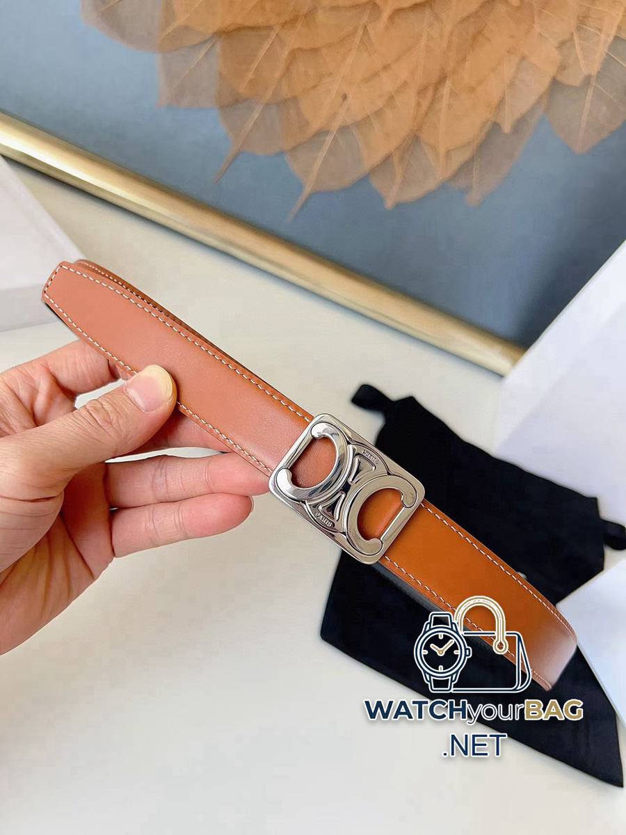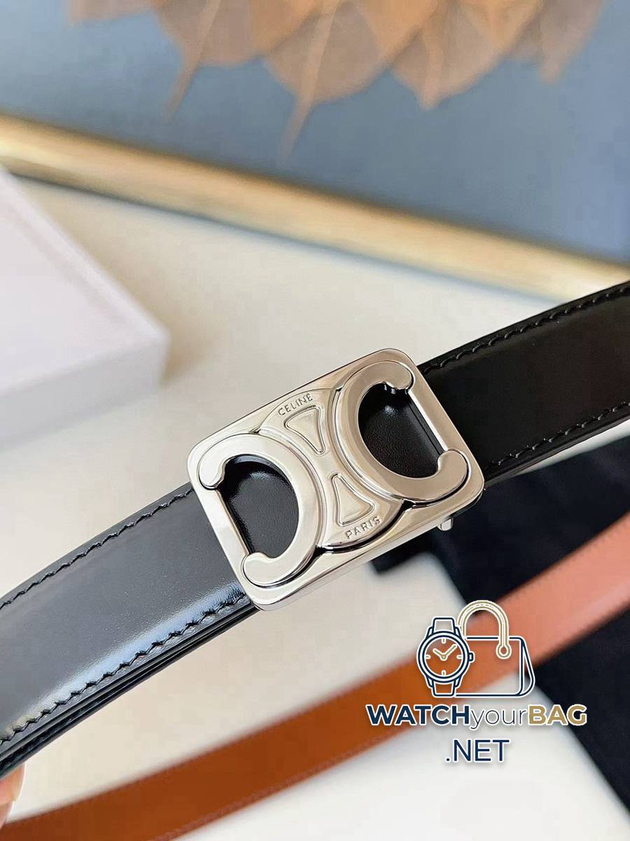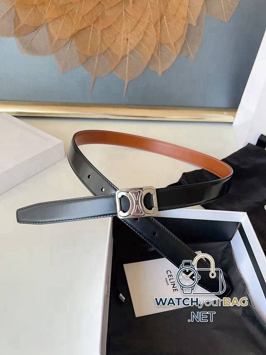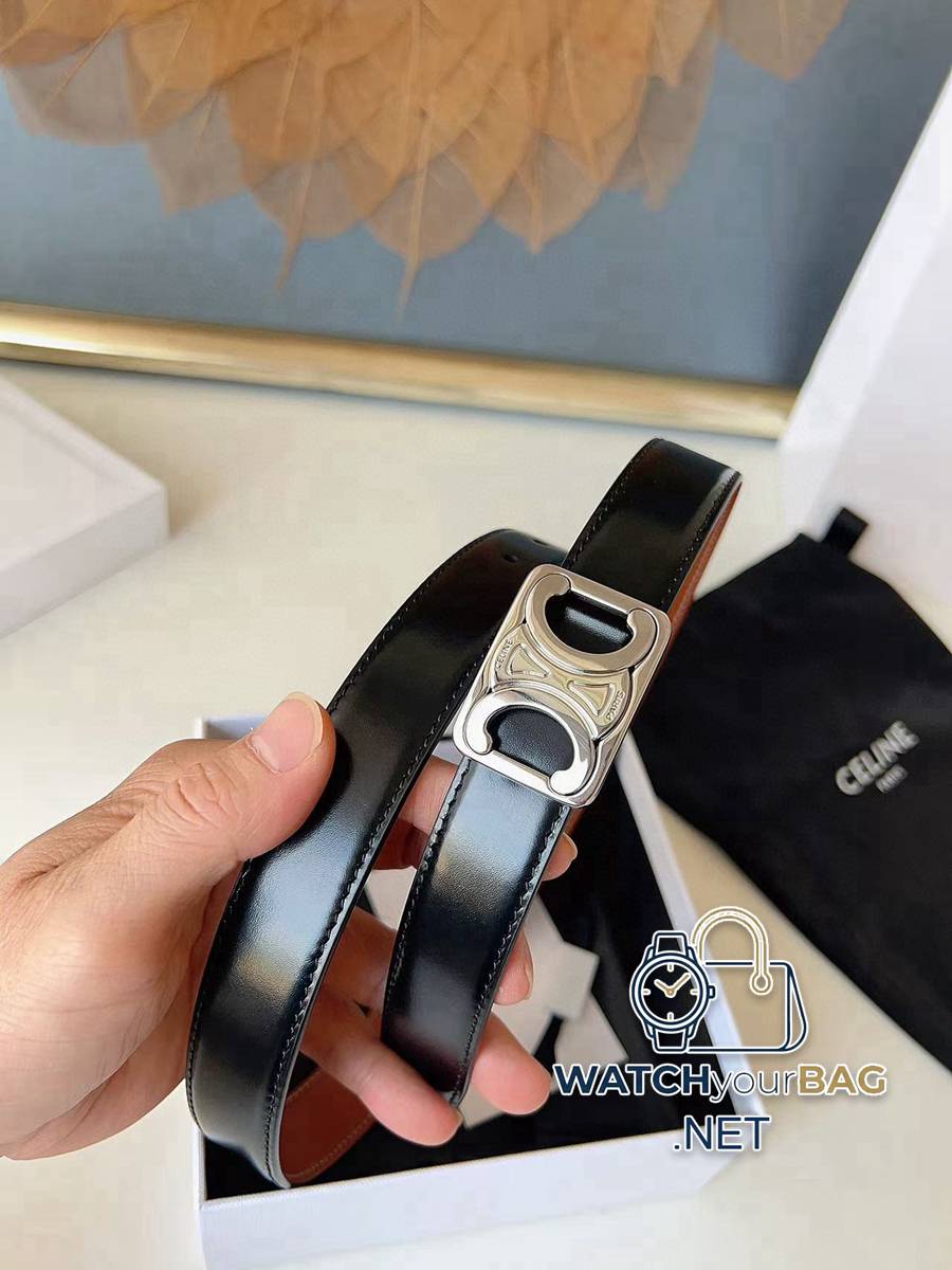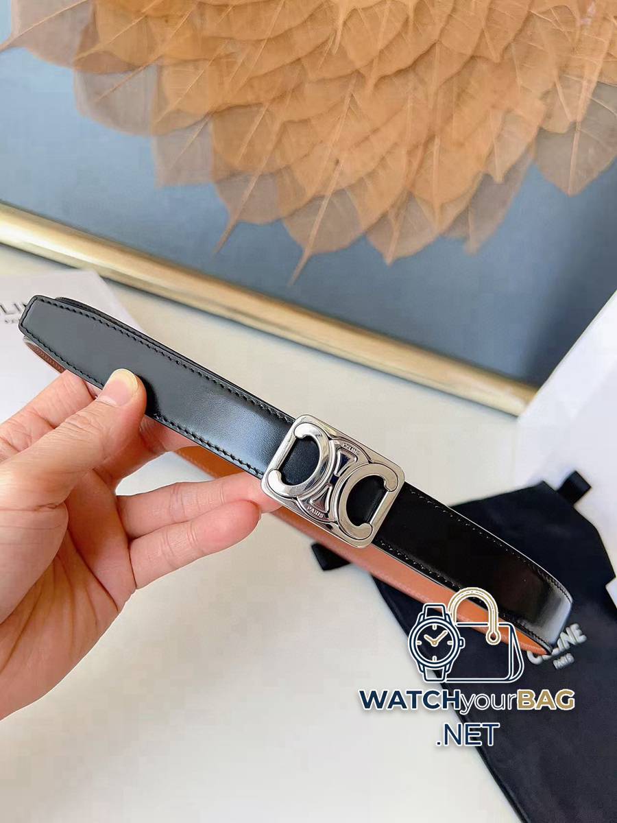 Celine Arc de Triomphe new ALIX medium 25mm double-sided belt is made of cow leather, metal finish, removable oval buckle, double-sided belt, TRIOMPHE double-sided studs. Width: 2.5cm
