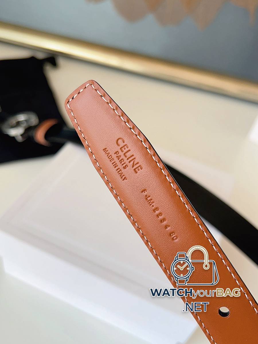 Celine Arc de Triomphe new ALIX medium 25mm double-sided belt is made of cow leather, metal finish, removable oval buckle, double-sided belt, TRIOMPHE double-sided studs. Width: 2.5cm