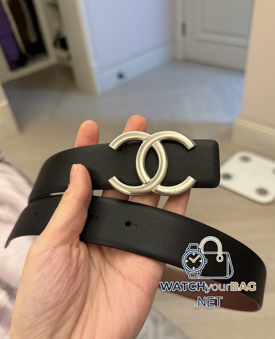 Chanel Double C Metal Buckle Belt Wearing Guide This classic Chanel Double C metal buckle belt is made of black calf leather with gold and silver metal buckles. The design is simple and highly recognizable. It is not only an eye-catching accessory, but also a powerful tool to enhance the overall look and feel. Whether it is daily commuting, dating or light luxury parties, it can be easily worn and inject a sense of luxury and brand aura into your outfit.