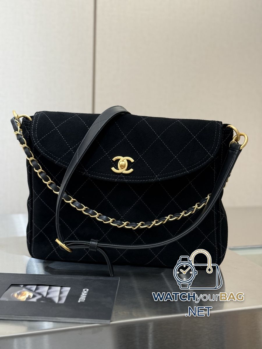 26C suede messenger bag black 26C suede Hobo messenger bag has the right shape, retro and fashionable. It can be carried in a variety of ways with a coat. It is very beautiful and fashionable and has a good capacity. It is enough for daily use. Size: 24x30x8cmAS: 5883-