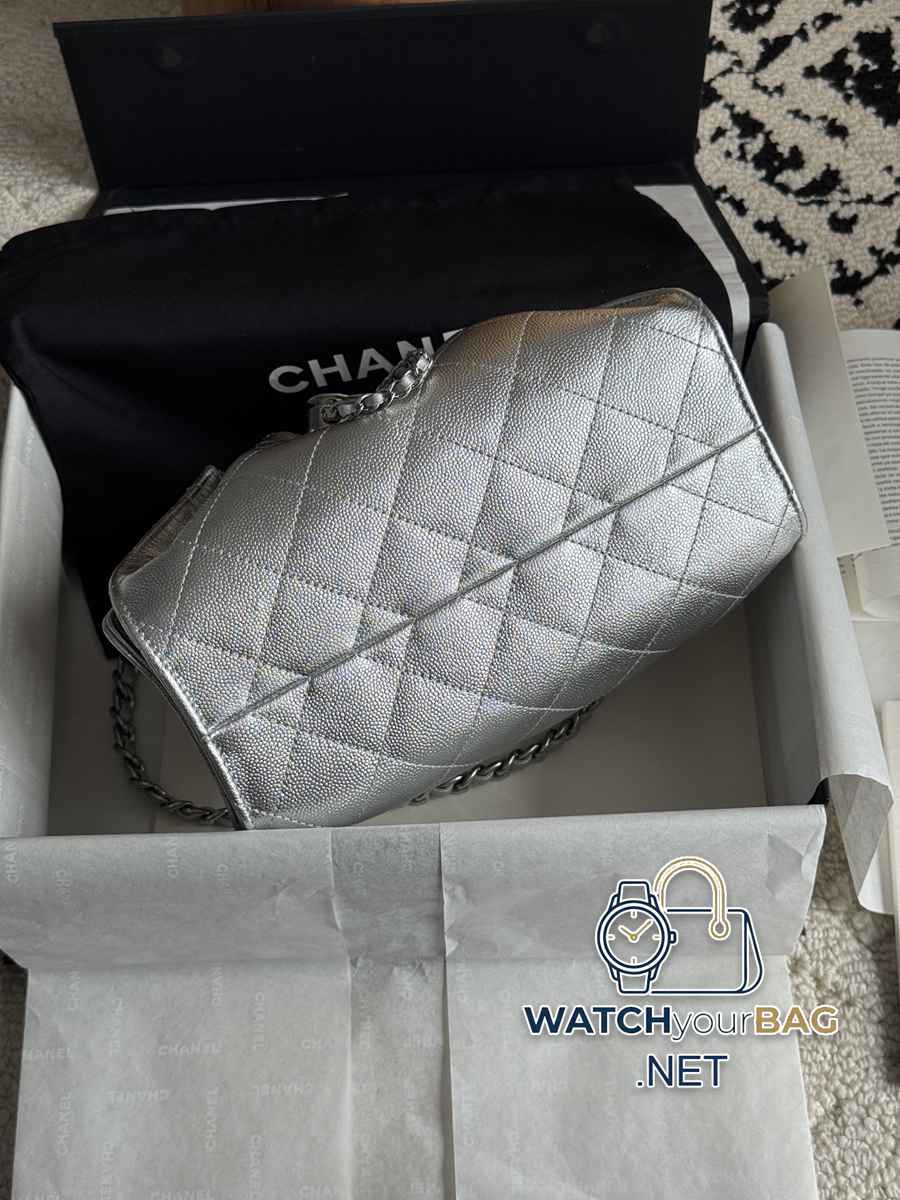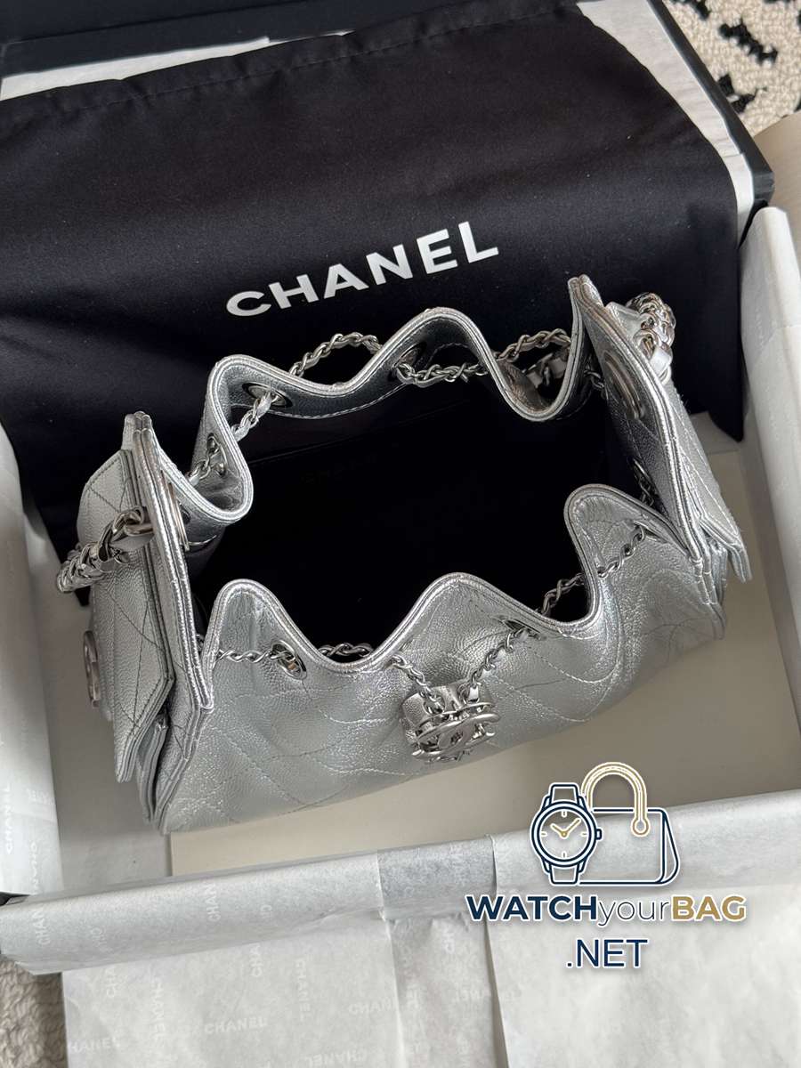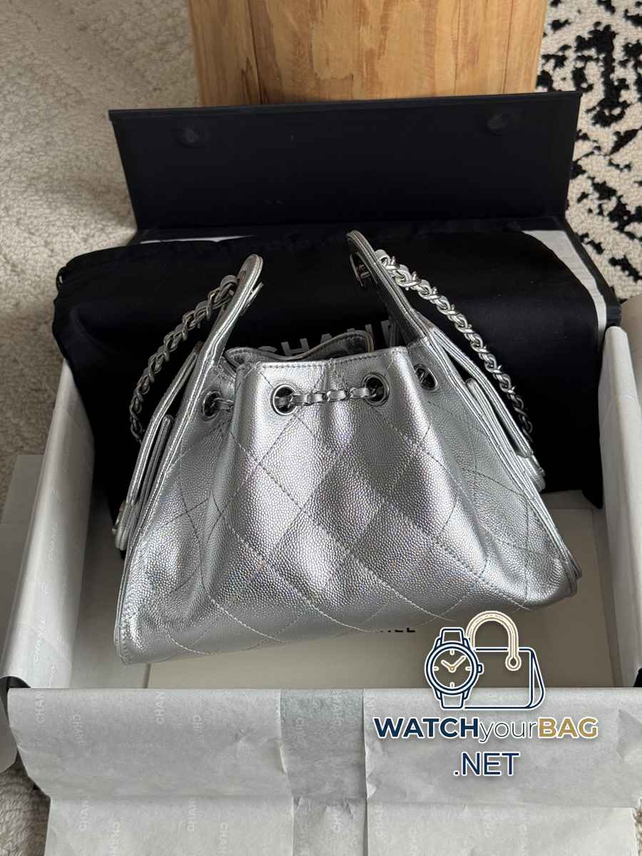 26c HOBO Bag 25bag mini Original version The most popular series of the season must be the 25bag Hobo. It adopts exquisite and regular rhombus pattern, adding three-dimensionality and fashion sense. The overall bucket shape is simple and elegant, with smooth lines, both elegant and casual. Leather: Original caviar cowhide Hardware: Customized pure gilt copper Size: 20*22*12.5cm Model: 5631