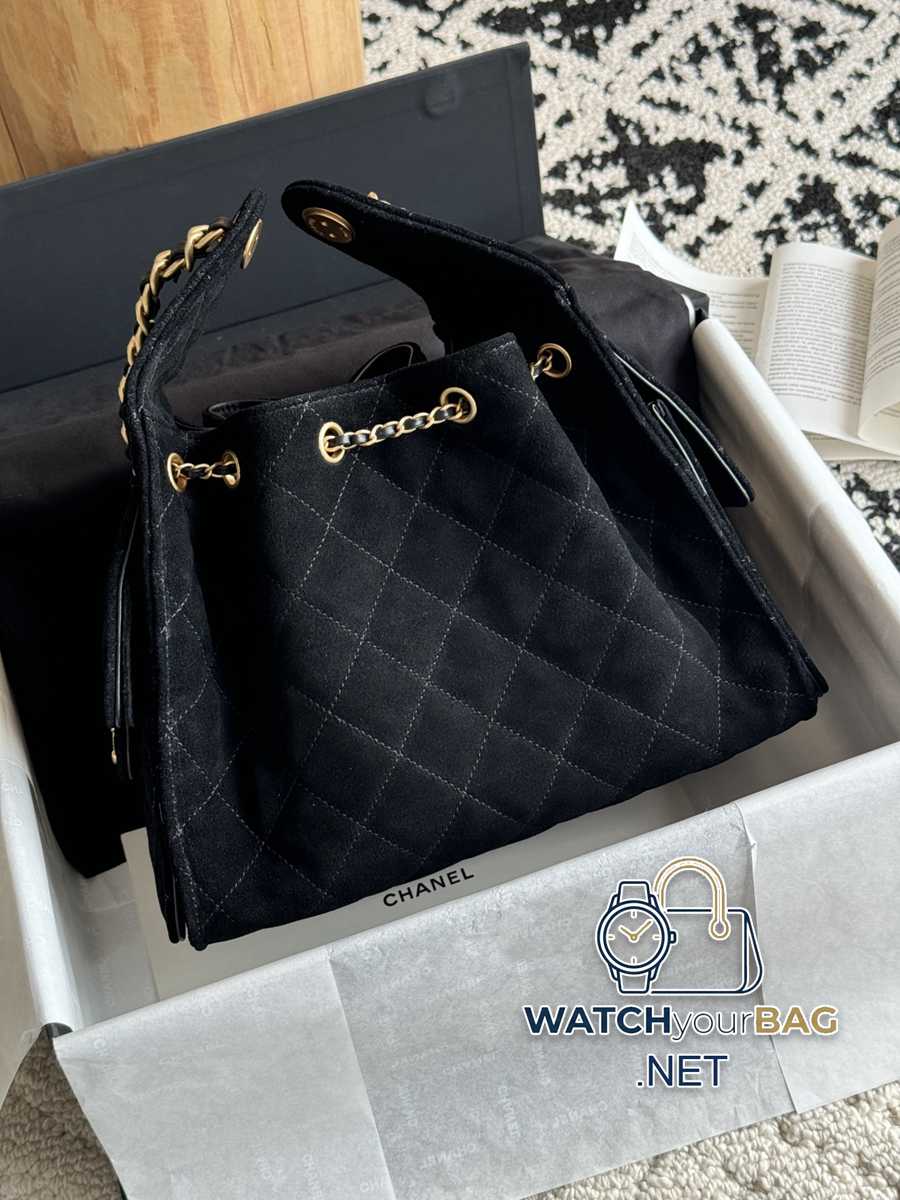 25c HOBO Bag 25bag Original version The most popular series of the season must be the 25bag Hobo. It adopts exquisite and regular rhombus pattern, adding three-dimensionality and fashion sense. The overall bucket shape is simple and elegant, with smooth lines, both elegant and casual. Leather: Original frosted suede Hardware: Customized pure gilt copper Size: 30*26*14cm Model: 5293