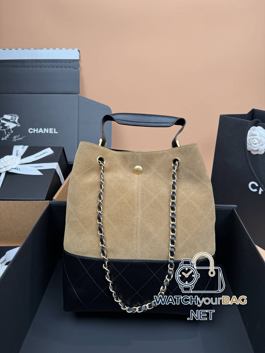 25AHobo shopping bag series: solid version of fashion and classic, timeless. Classic diamond quilted leather: imported brown suede and black lambskin Hardware: gilt Size: w29×h33×11cm Model: 5635 brown suede gilt No packaging included