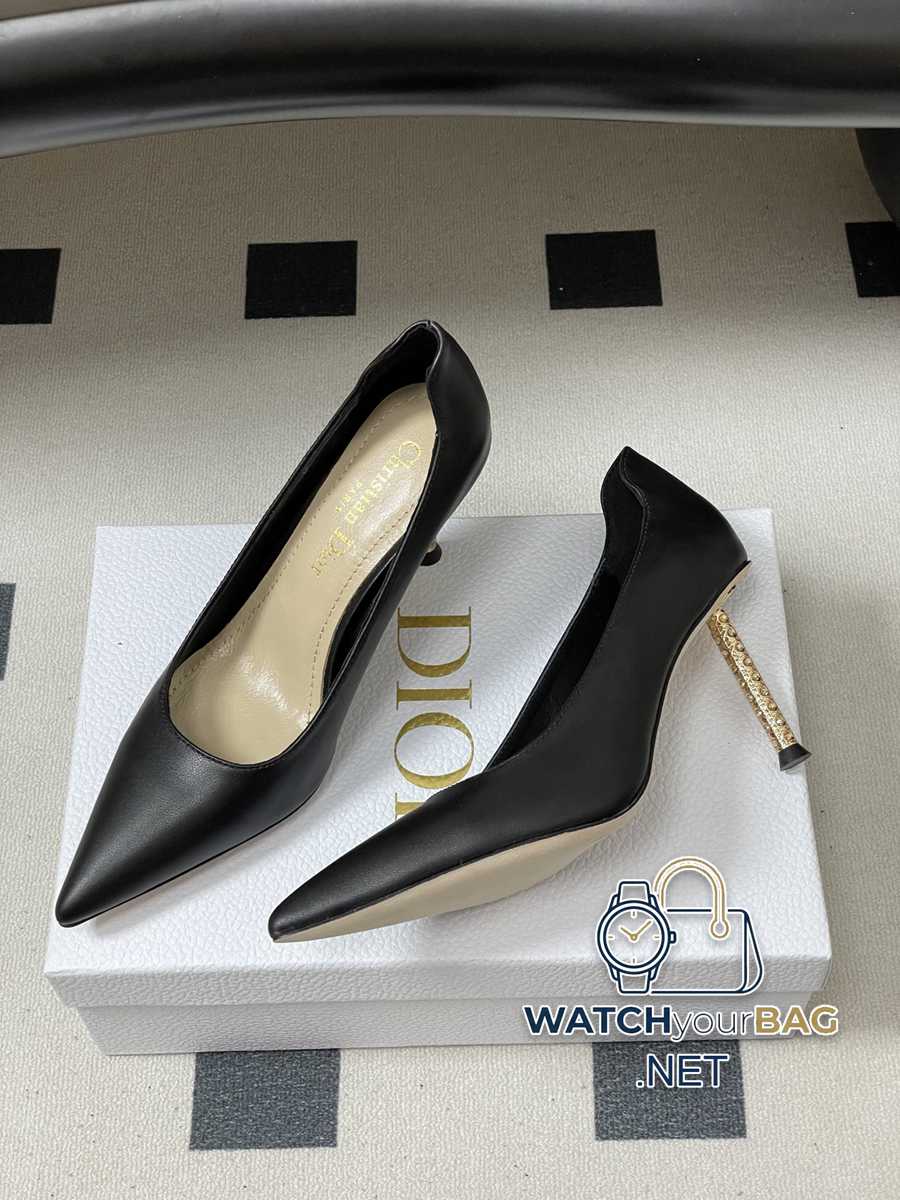 26ss spring and summer new Dior D-Icon slingback high heels CD hardware buckle pointed toe Mary Jane shoes buckle back hollow high heel sandals iron heel high heels This Dior Icon slingback high heels pay tribute to Dior’s haute couture spirit. Black pleated patent calfskin upper with pointed toe, adjustable front lace-up embellished with interlocking CD logo inspired by Dior archives. Paired with an 8cm cylindrical stiletto heel with a gold-finished metal cannage pattern, it adds an elegant finishing touch and highlights a sophisticated aesthetic style. Cute and playful, age-reducing without losing the sense of high-end ~ the sense of sight of a wealthy daughter ~ elegant and ladylike style! The upper foot is super beautiful ~ showing elegance. A must-have item for exquisite little fairies. Upper: cowhide lining. Feet: sheepskin. Sole: Italian genuine leather. Heel height: 8cm. Size: 35-39 (40.41.42 custom-made, non-refundable)