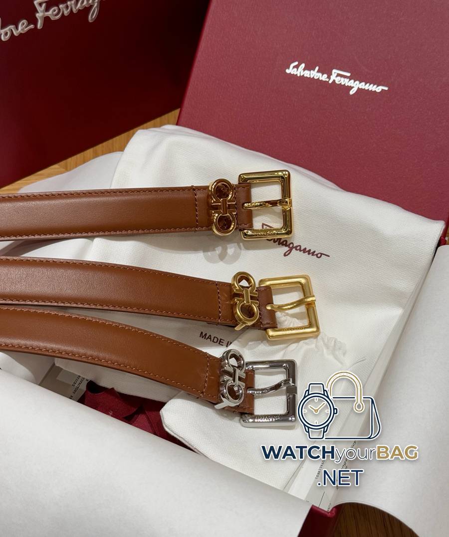 Ferragamo Women Belt This belt is made of top-quality materials. The leather is soft and skin-friendly, with a natural and delicate texture. After special processing, the leather is tough and durable. On the fashion stage, the feminine charm always blooms in the details. The Ferragamo 2.5cm women pin buckle belt is like a smart work of art. The elegance and personality outlined with delicate brushstrokes become the finishing touch to highlight the fashion attitude. Width 2.5vm.