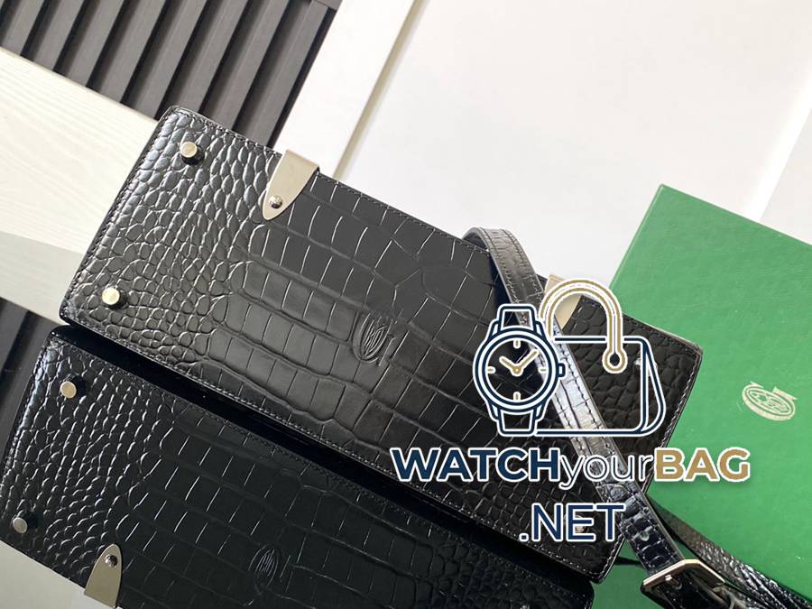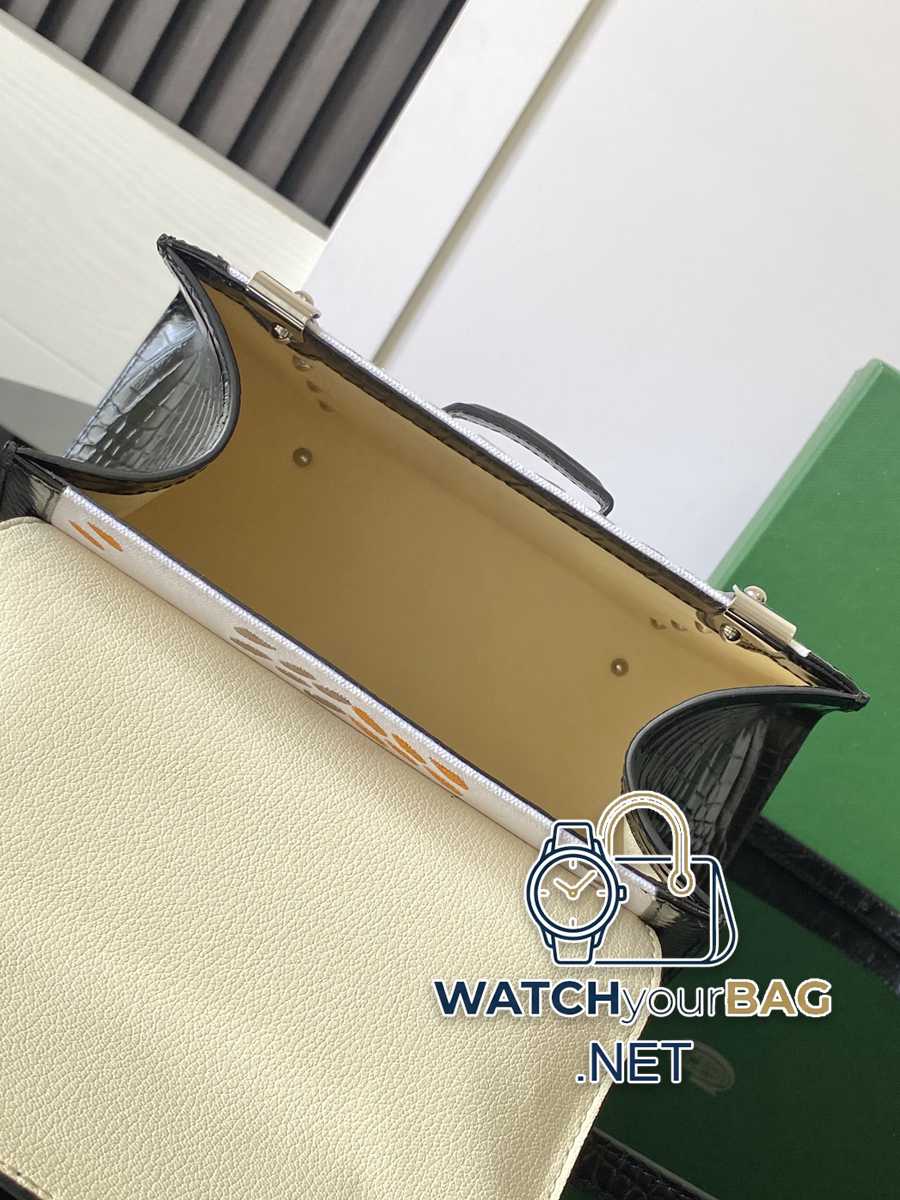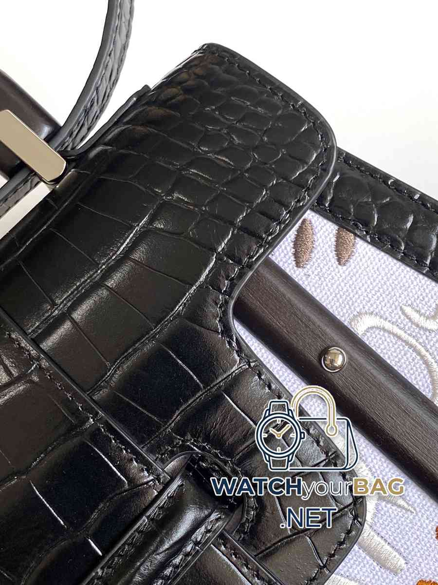 ViP’s advanced custom Saïgon small bag has silk letter embroidery and crocodile leather on the front. It is extremely luxurious and continues the structured pocket design. The shoulder strap is detachable, showing a chic and elegant charming style. 20 cm x 12 cm x 28 cm 020186 Embroidery (Crocodile) – Black