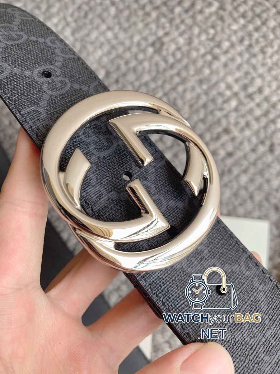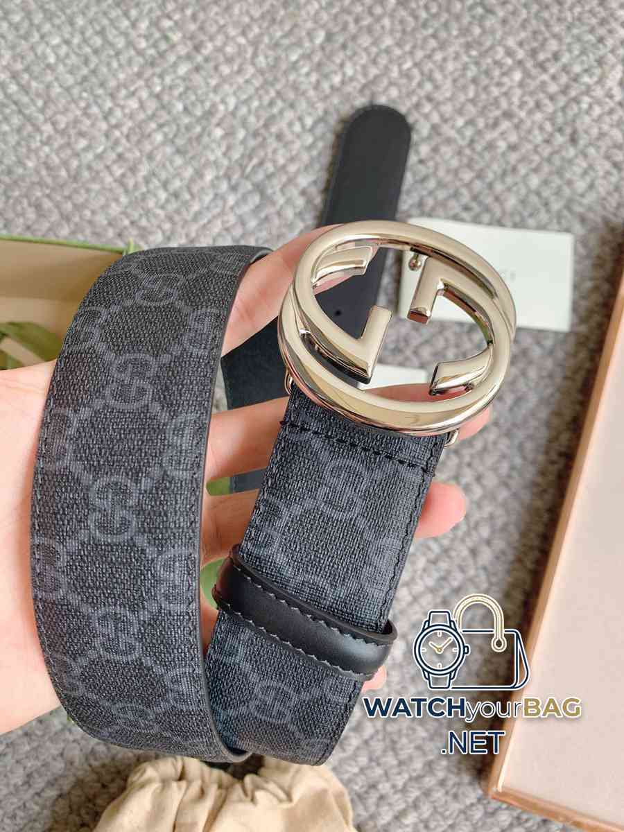 Fashion item Gucci new belt. The appearance of the Cruise 2024 series combines functionality with fashion. This elegant belt is crafted from black leather and features interlocking G hardware. Width 4.0 Hardware material, copper buckle.
