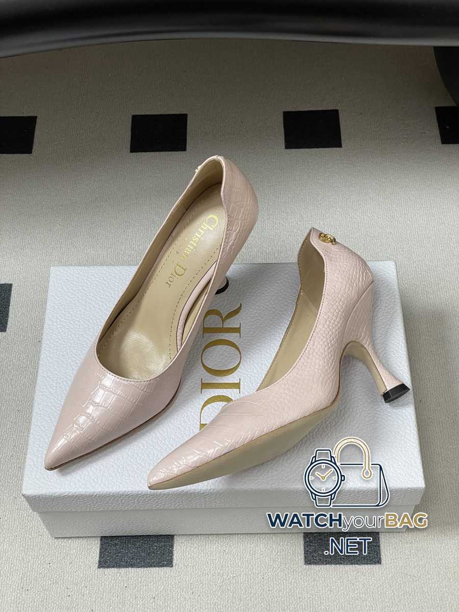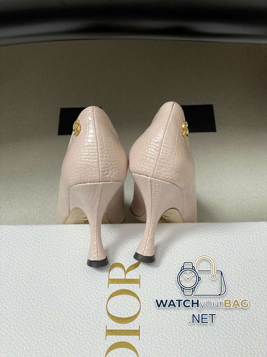 26ss spring and summer new Dior latest catwalk model CD letter hardware buckle crocodile pattern leather pointed toe high heels retro style high-heeled shoes Dior 2026 spring and summer series high heels, designed by Jonathan Anderson, black pointed toe + gold CD metal buckle, elegant and modern. The stiletto heel is 9.5cm, which modifies the shape of the legs and elongates the proportions. It is suitable for formal occasions such as the workplace and banquets. The upper is made of high-quality leather, soft to the touch and comfortable to wear. The CD metal buckle is a classic symbol of Dior, highlighting the brand history and innovation. The overall design combines classicity and playfulness, and is a symbol of modern femininity and confidence. Upper: Cowhide/Sheep Leather Lining Foot: Sheepskin Sole: Italian genuine leather Outsole Heel Height: 9.5cm Size: 35-39 (40.41 customized, non-refundable)