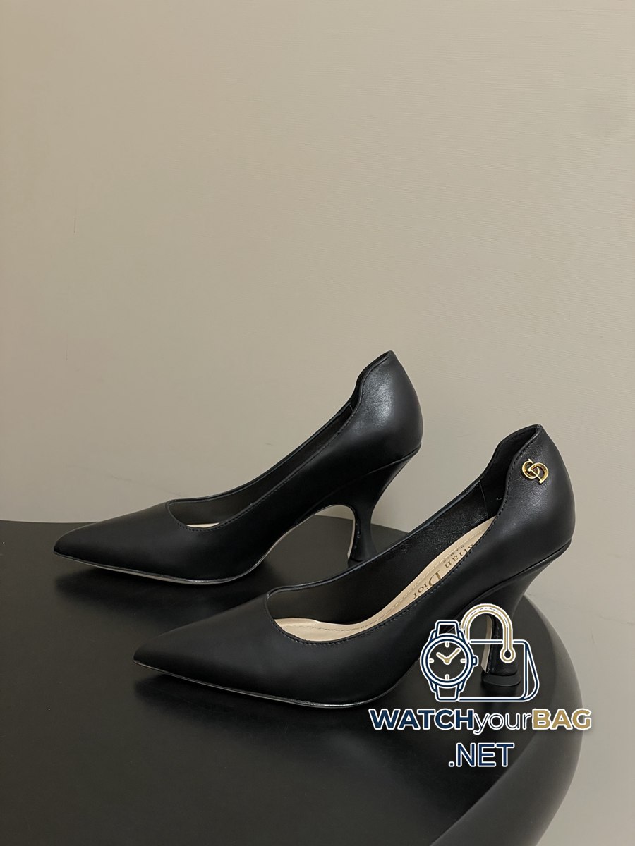 26ss spring and summer new Dior latest catwalk model CD letter hardware buckle crocodile pattern leather pointed toe high heels retro style high-heeled shoes Dior 2026 spring and summer series high heels, designed by Jonathan Anderson, black pointed toe + gold CD metal buckle, elegant and modern. The stiletto heel is 9.5cm, which modifies the shape of the legs and elongates the proportions. It is suitable for formal occasions such as the workplace and banquets. The upper is made of high-quality leather, soft to the touch and comfortable to wear. The CD metal buckle is a classic symbol of Dior, highlighting the brand history and innovation. The overall design combines classicity and playfulness, and is a symbol of modern femininity and confidence. Upper: Cowhide/Sheep Leather Lining Foot: Sheepskin Sole: Italian genuine leather Outsole Heel Height: 9.5cm Size: 35-39 (40.41 customized, non-refundable)