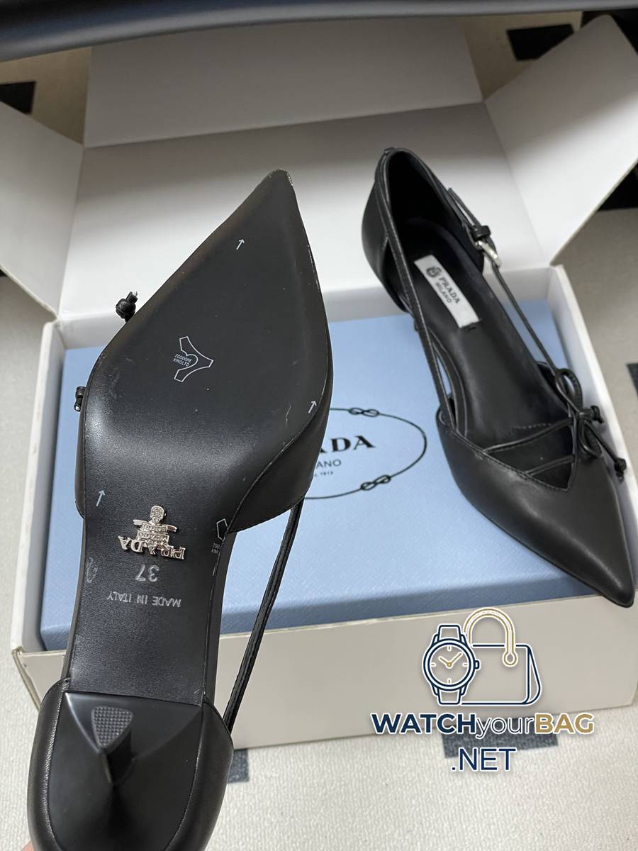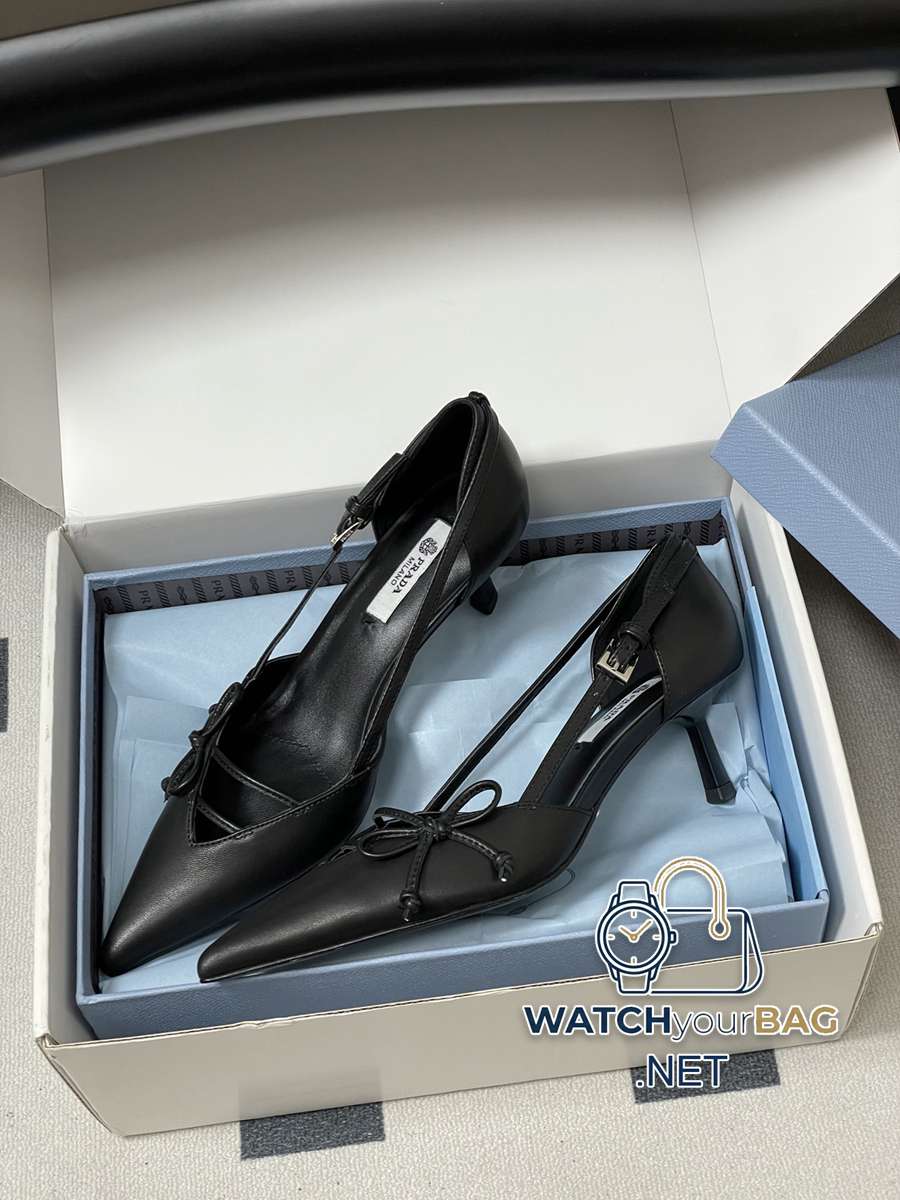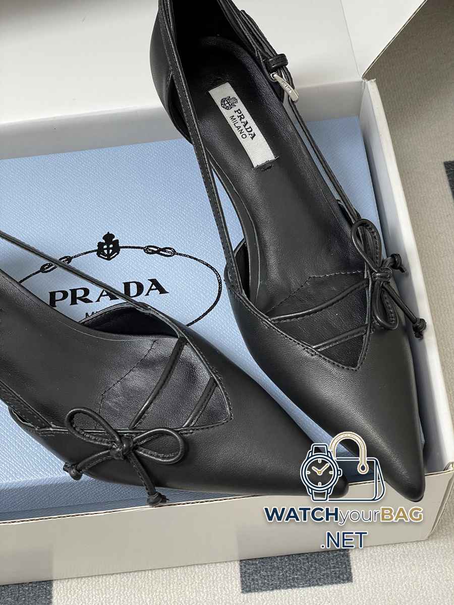 26Ss spring and summer new Prada Prada latest catwalk model pointed toe bow high heels, buckled side hollow stiletto shoes, retro old money style kitten heel shoes, the minimalist beauty that has been missing in the fashion industry for a long time, fashionable and exquisite for daily wear. Strong lines and bold details have transformed the high heels that symbolize feminine charm into a unique and not traditional design. The pointed silhouette is crafted from cow leather with pronounced seams and intentionally unfinished raw cut edges. The delicate stiletto heel completes the shoe versatile style. Made of high-quality leather material, the texture is high-end, showing a retro yet modern texture, and the craftsmanship is exquisite, reflecting the high-end quality of the brand. The stiletto heel design enhances the wearer aura while maintaining good stability, making it suitable for daily commuting or special occasions. Upper: Cow patent leather/calfskin Lining Feet: Sheepskin Sole: Italian leather Outsole Heel height: 7.5cm/5.5cm Size: 35-39 (40.41 custom-made, non-refundable)