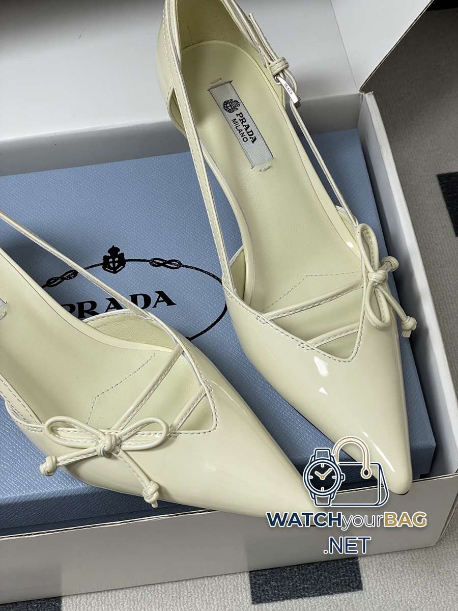 26Ss spring and summer new Prada Prada latest catwalk model pointed toe bow high heels, buckled side hollow stiletto shoes, retro old money style kitten heel shoes, the minimalist beauty that has been missing in the fashion industry for a long time, fashionable and exquisite for daily wear. Strong lines and bold details have transformed the high heels that symbolize feminine charm into a unique and not traditional design. The pointed silhouette is crafted from cow leather with pronounced seams and intentionally unfinished raw cut edges. The delicate stiletto heel completes the shoe versatile style. Made of high-quality leather material, the texture is high-end, showing a retro yet modern texture, and the craftsmanship is exquisite, reflecting the high-end quality of the brand. The stiletto heel design enhances the wearer aura while maintaining good stability, making it suitable for daily commuting or special occasions. Upper: Cow patent leather/calfskin Lining Feet: Sheepskin Sole: Italian leather Outsole Heel height: 7.5cm/5.5cm Size: 35-39 (40.41 custom-made, non-refundable)
