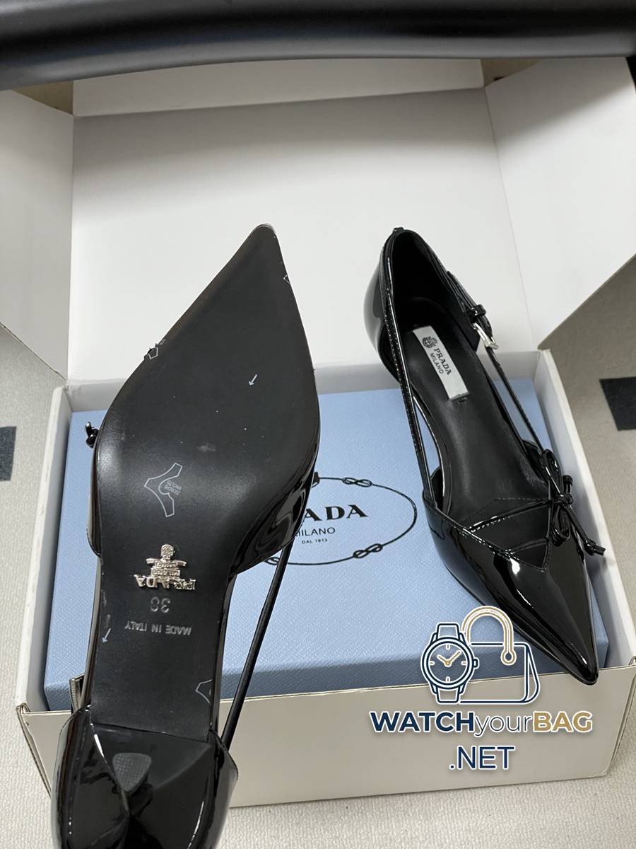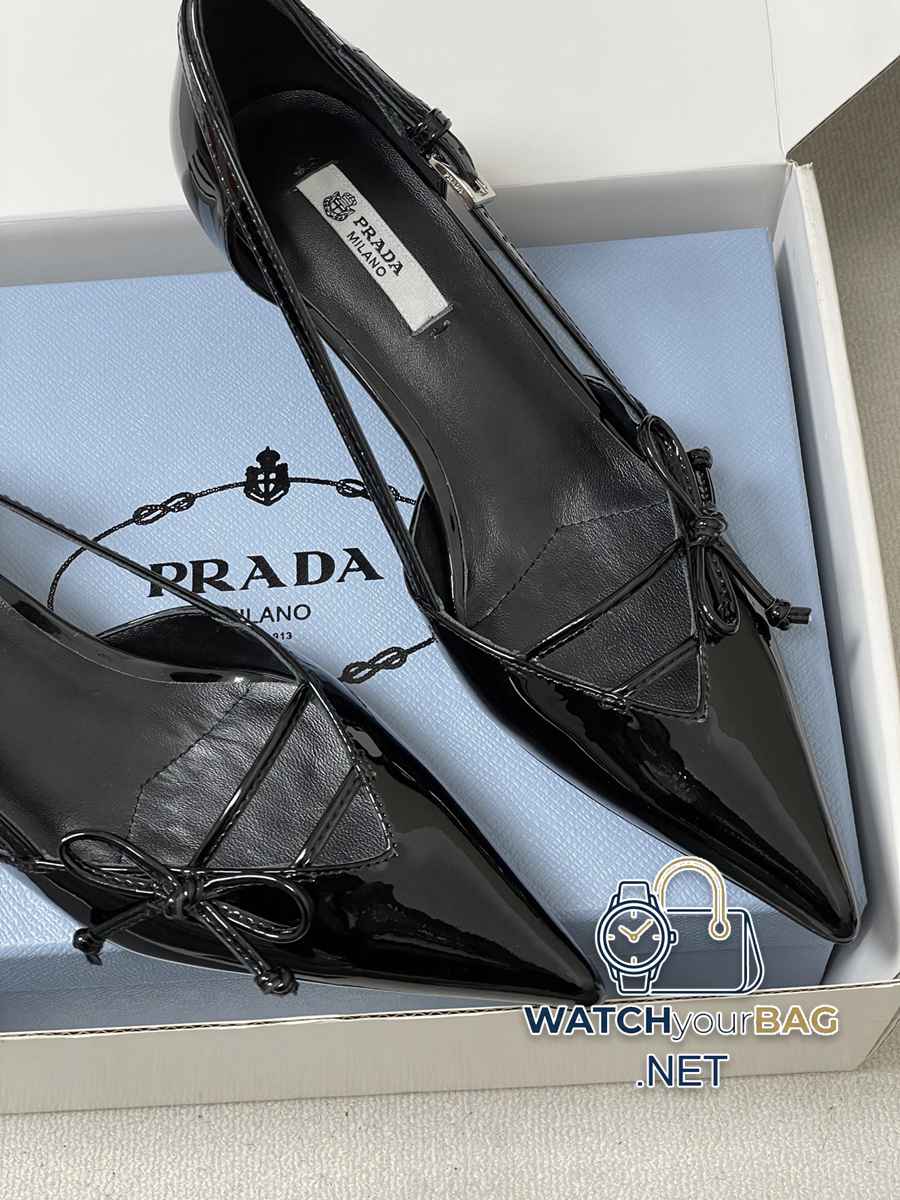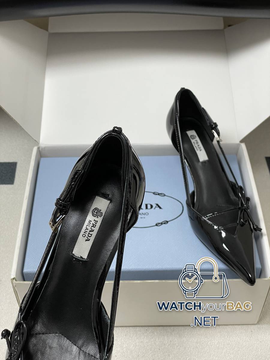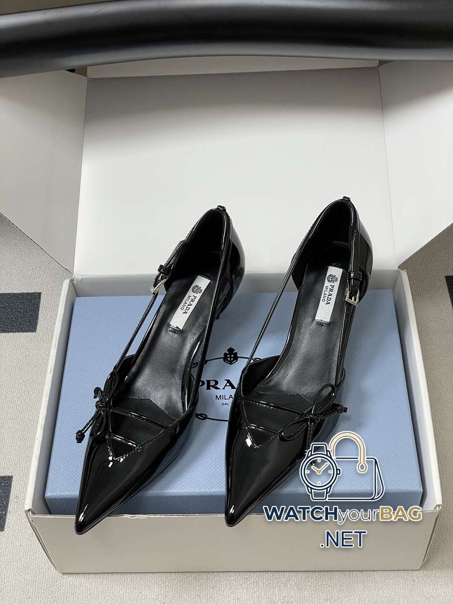 26Ss spring and summer new Prada Prada latest catwalk model pointed toe bow high heels, buckled side hollow stiletto shoes, retro old money style kitten heel shoes, the minimalist beauty that has been missing in the fashion industry for a long time, fashionable and exquisite for daily wear. Strong lines and bold details have transformed the high heels that symbolize feminine charm into a unique and not traditional design. The pointed silhouette is crafted from cow leather with pronounced seams and intentionally unfinished raw cut edges. The delicate stiletto heel completes the shoe versatile style. Made of high-quality leather material, the texture is high-end, showing a retro yet modern texture, and the craftsmanship is exquisite, reflecting the high-end quality of the brand. The stiletto heel design enhances the wearer aura while maintaining good stability, making it suitable for daily commuting or special occasions. Upper: Cow patent leather/calfskin Lining Feet: Sheepskin Sole: Italian leather Outsole Heel height: 7.5cm/5.5cm Size: 35-39 (40.41 custom-made, non-refundable)