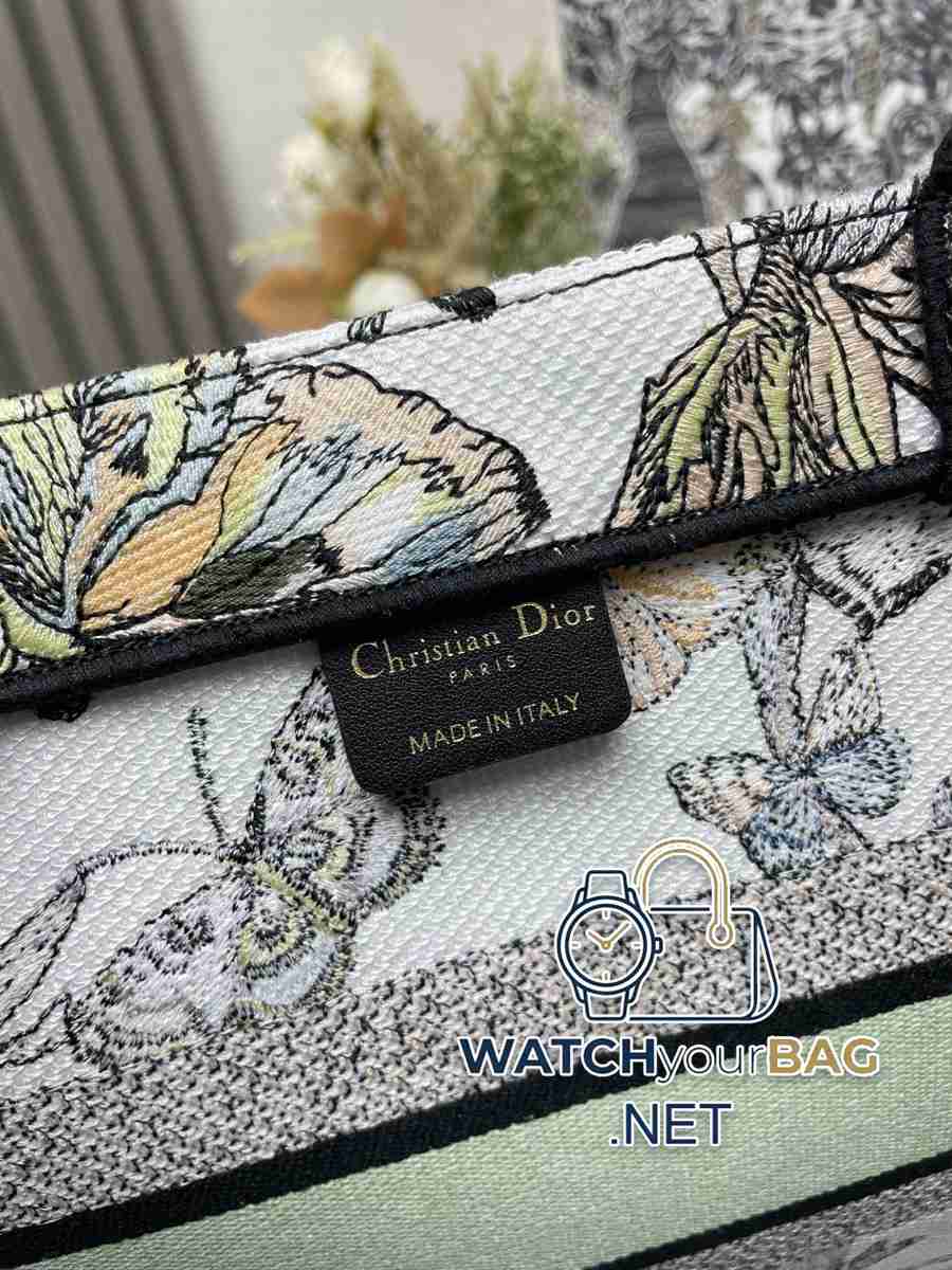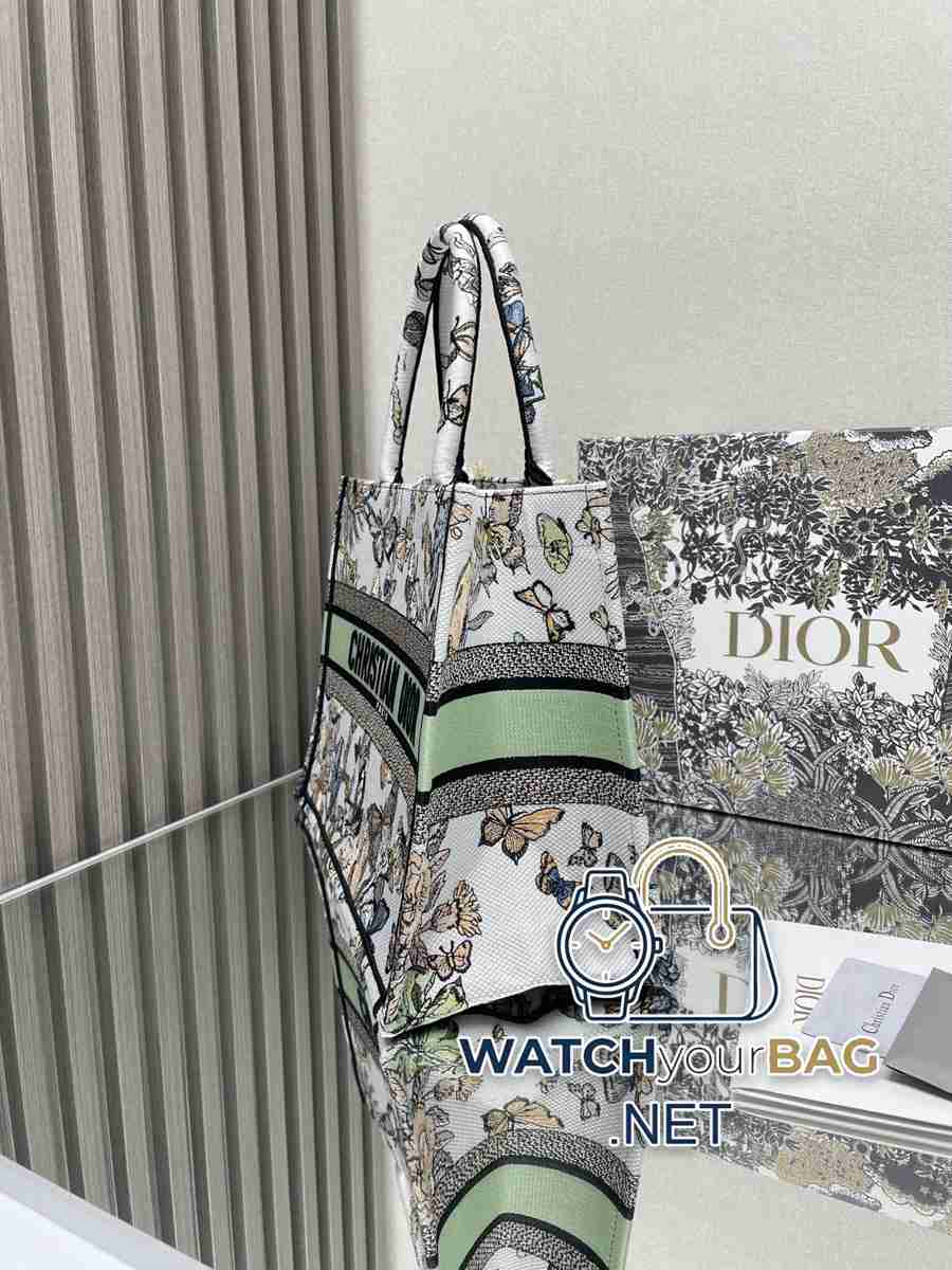 Green butterfly ❤ Medium Dior book tote shopping bag This Book Tote handbag is inspired by women’s creative director Maria Grazia Chiuri (Maria Grazia Chiuri) and is a flagship product that embodies the Dior aesthetic. It can store a variety of daily necessities, and features a new interpretation of Bayadere pattern mixed effect D-Stripes pattern embroidery, which is more fashionable. The front is decorated with the “Christian Dior” logo, which fully reflects Dior’s exquisite craftsmanship. Style number: 1286 Size: 36×28 cm