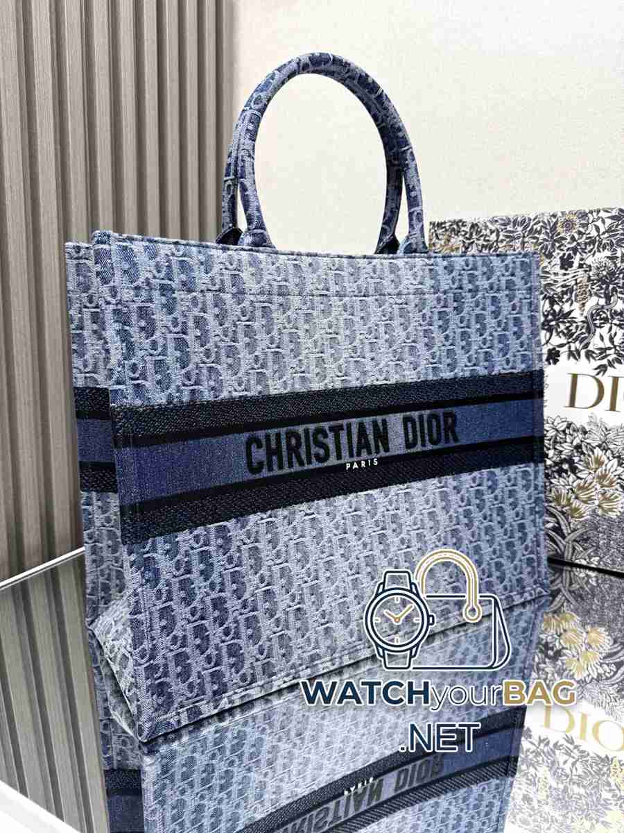 Top original single denim blue D large size Dior book tote shopping bag. This Book Tote handbag is inspired by women’s creative director Maria Grazia Chiuri (Maria Grazia Chiuri) and is a flagship product that embodies Dior’s aesthetic. It can store a variety of daily necessities, and features a new interpretation of Bayadere pattern mixed effect D-Stripes pattern embroidery, which is more fashionable. The front is decorated with the “Christian Dior” logo, which fully reflects Dior’s exquisite craftsmanship. Style number: 1286 Dimensions: 42 x 35 x 18.5 cm (L x H x W) Roomy enough to store 1 15″ laptop, 1 clutch, 1 wallet, 1 mobile phone, 1 card holder, sunglasses and lipstick