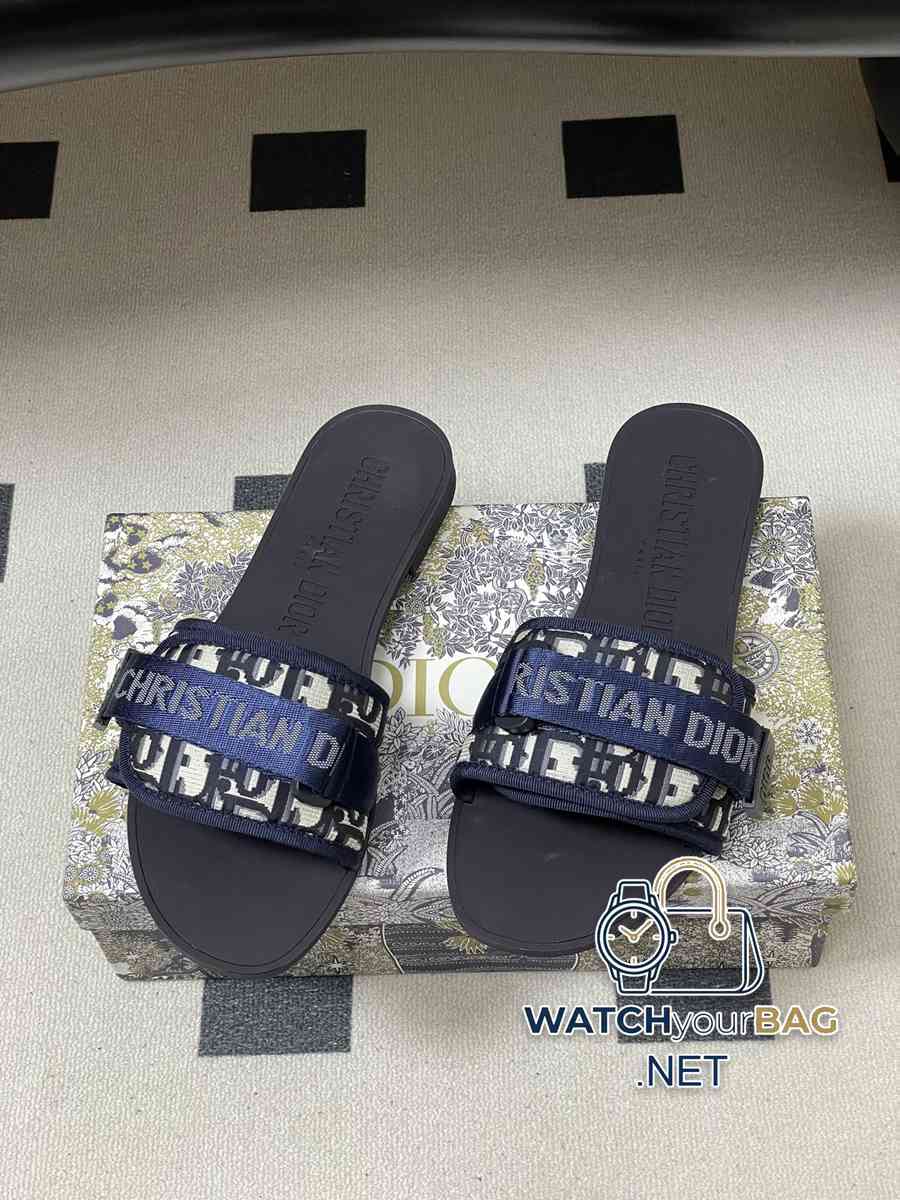 Dior classic evolution sandals, cotton fabric Velcro, Oblique printed slippers, rubber CD letter flat sandals, this Dior evolution sandals are a classic item. The adjustable Velcro strap is embellished with the Christian Dior signature and features a glossy technical upper with a dark blue Oblique print. The soft tonal rubber sole adds a stylish edge to casual looks. Upper: Customized electric embroidery technology fabric Sole: Original molded rubber outsole Size: 36-41