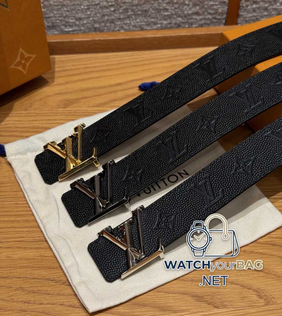 Collection picture LV double-sided men belt The double-sided belt is embellished with the “NBA” logo on the end, highlighting LV eye-catching cooperation with the world-renowned basketball league. The subtle grain presents Monogram pattern embossing, flip it over to reveal fine calfskin, embellished with exquisite metal parts, one side calfskin, one side Monogram embossed pattern, letter buckle embedded with leather NBA logo Width: 40 mm