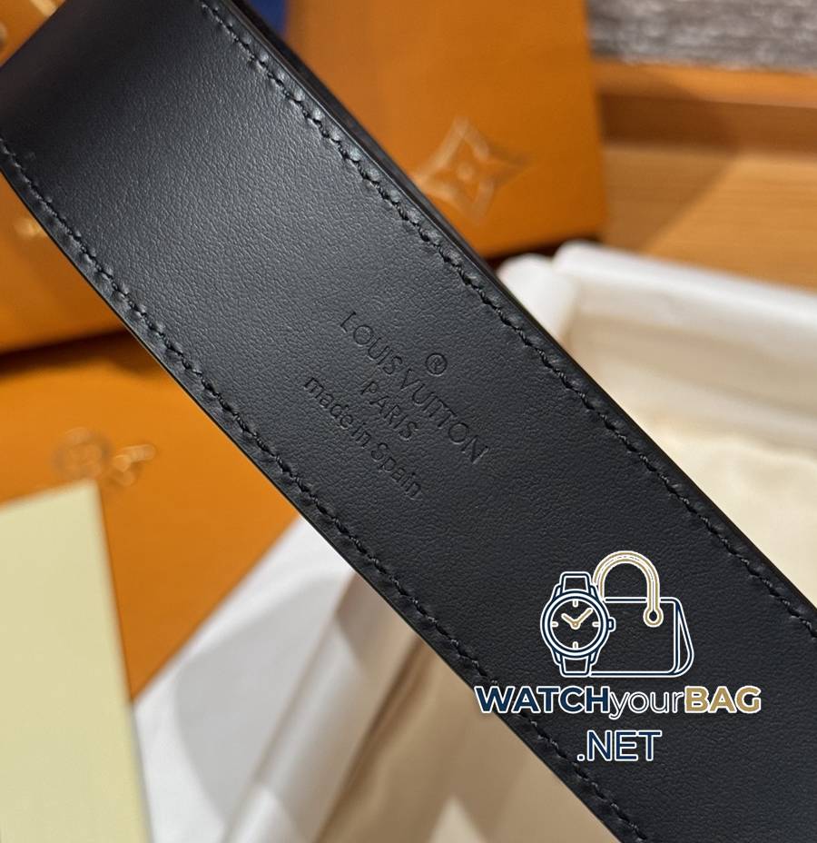 LV Men Belt This Taurillon leather belt has a metal drawstring ring with a hollow brand logo, giving it a calm and low-key style. Width: 35 mm