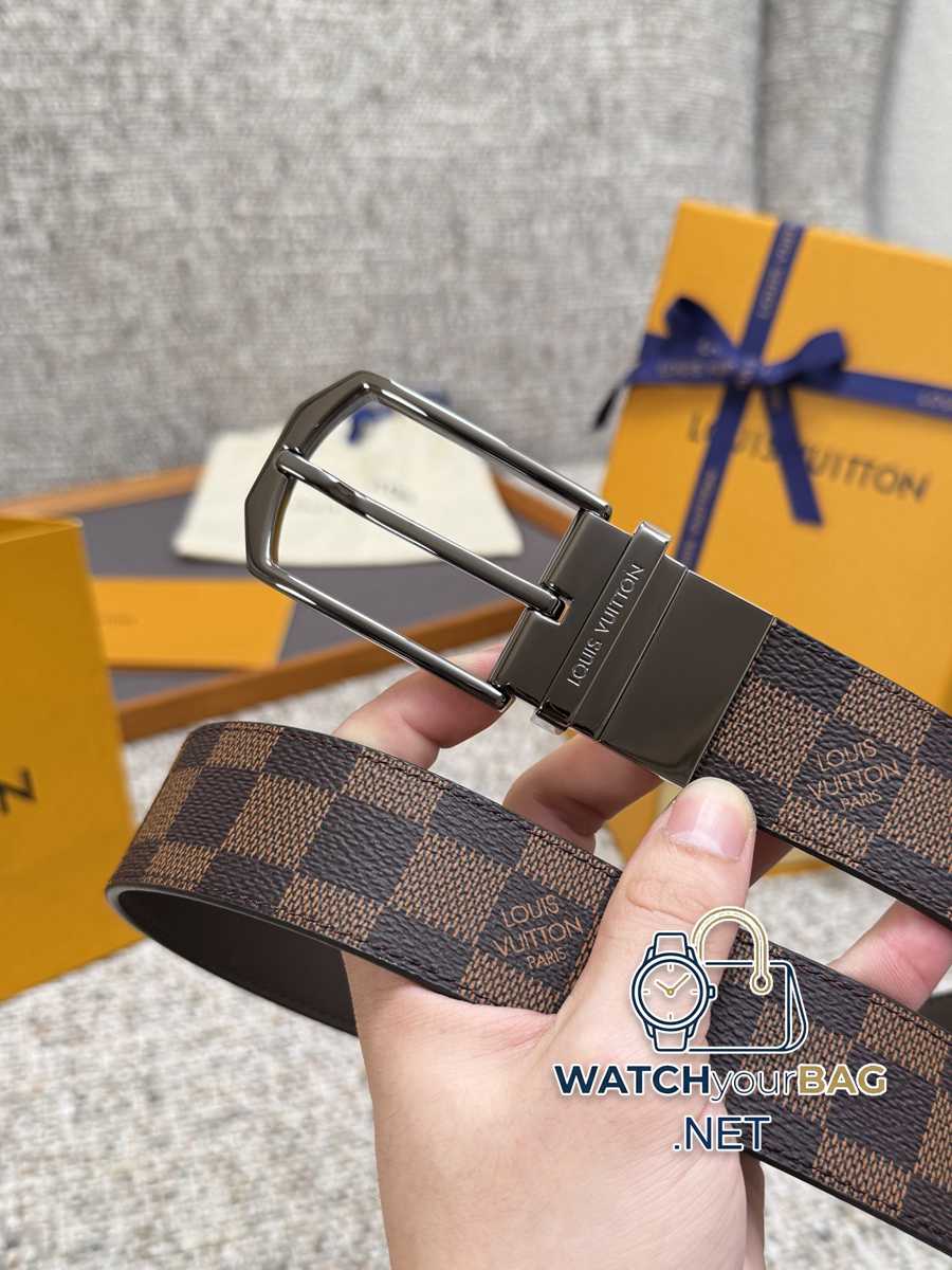 Louis Vuitton LV belt, grid rotating buckle series, original hardware, exquisite hand-painted edges, soft and comfortable, width 3.5