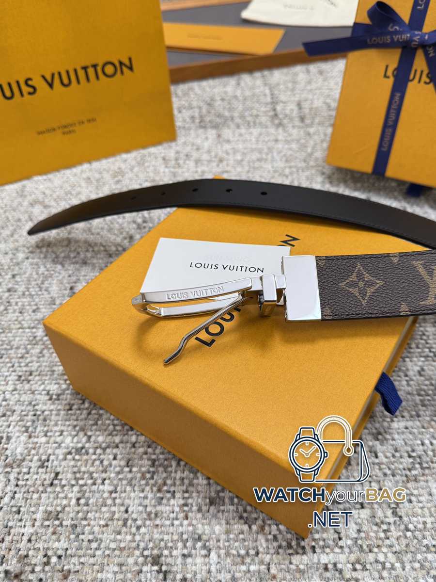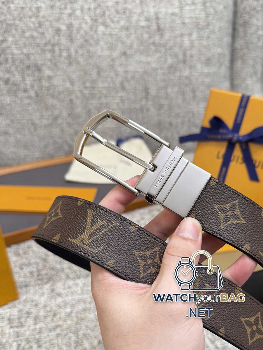 Louis Vuitton LV belt Black grid rotating buckle series Original hardware Exquisite hand-painted edges Soft and comfortable Width 3.5