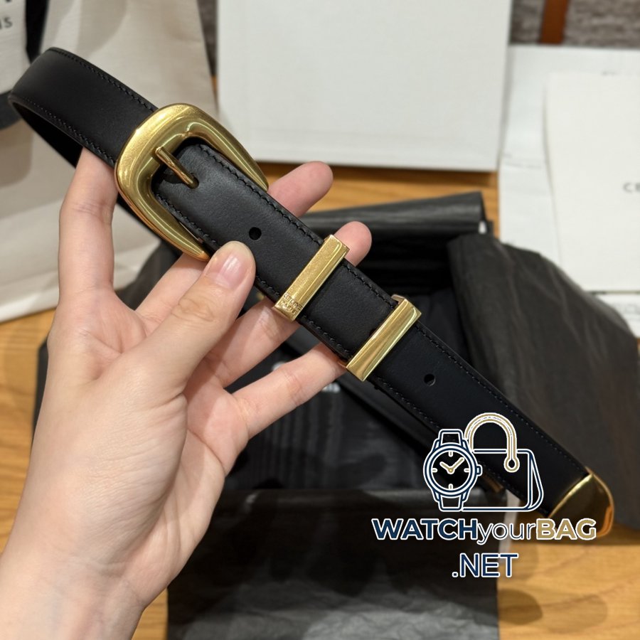 Arc de Triomphe women belt is made of cow leather with split cow leather on the bottom, round buckle, 2 metal ring buckles and 1 metal tip decoration, the bottom of the first ring is engraved with the brand logo. Width 2.5cm