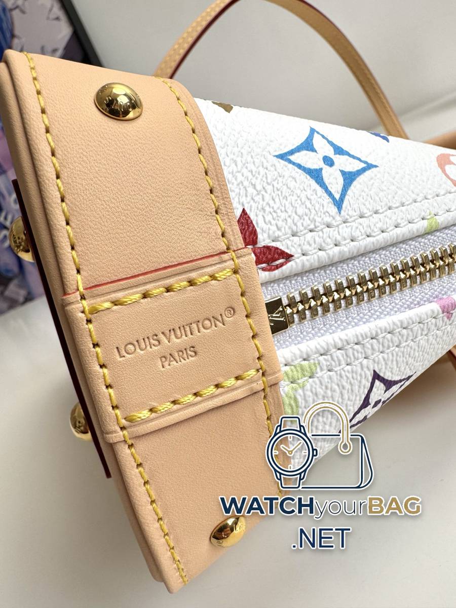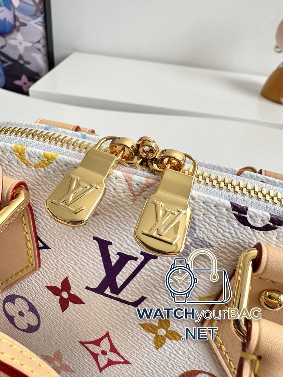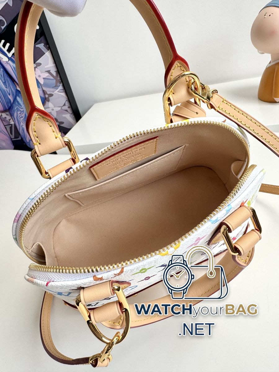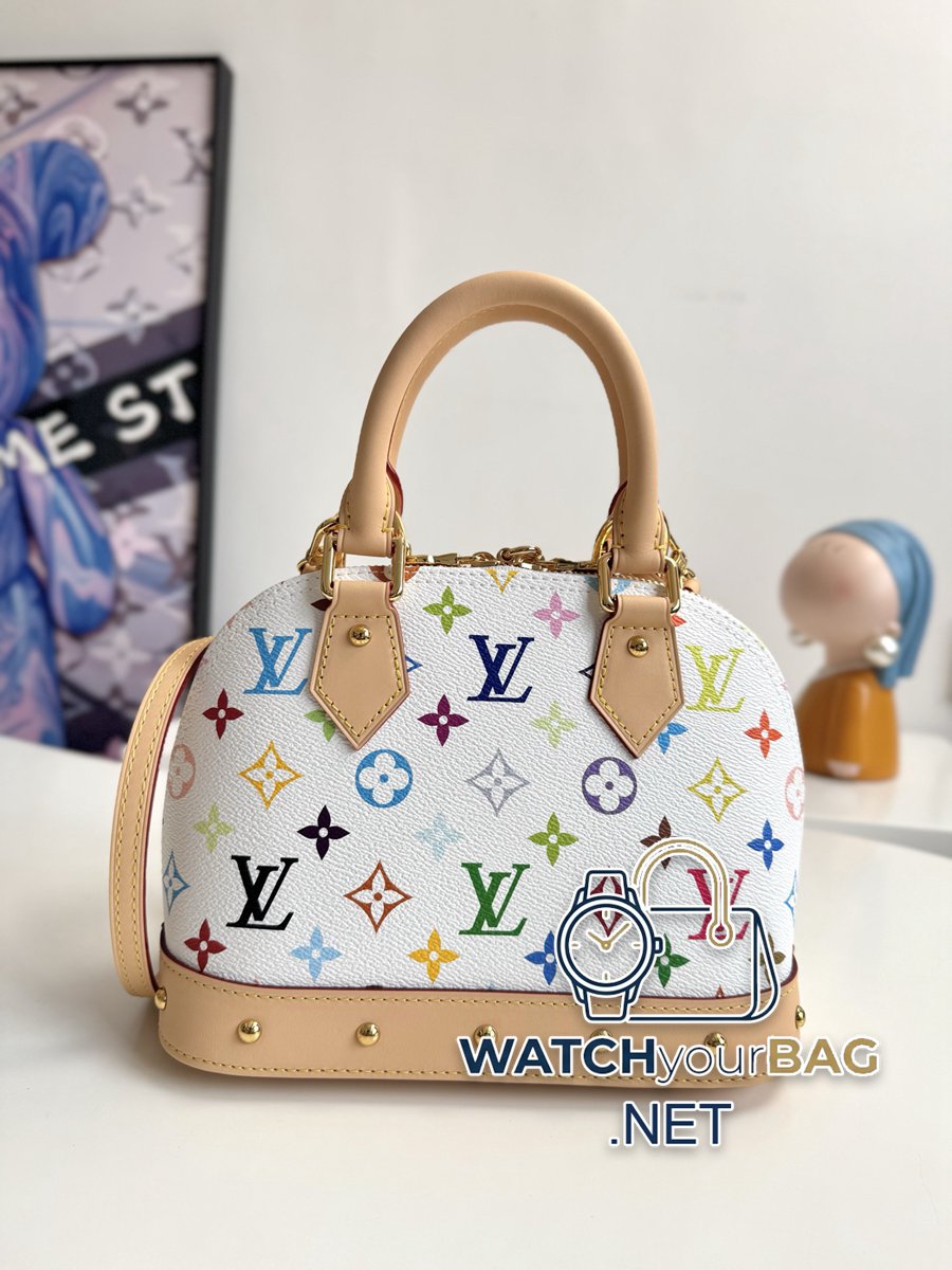 “163c dynamic chip with counter packaging” Exclusive real shot of overseas original M13078! The Alma BB bag embodies the cheerful style of the Louis Vuitton x Murakami collaboration, a subtle harkening back to the Art Deco designs of the 1930s. Monogram coated canvas renders Murakami’s playful tones, while classic calfskin touches the Toron handle, base, detachable shoulder strap and LV x TM key holder. Size: 23.5×17.5×11.5cm