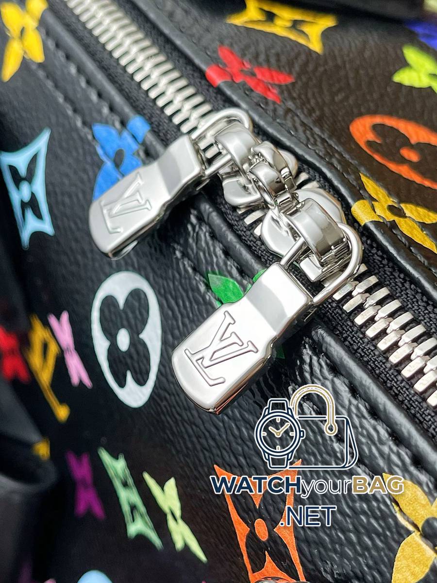 The M13257Speedy Soft 30 handbag is made of soft coated canvas, with the full-length Monogram pattern traced in colorful rainbow tones, highlighting the smart style of the Louis Vuitton x Murakami reissue series. The Toron handle and detachable shoulder strap are constructed of cow leather, the metal corners recall classic luggage elements, and the bow-shaped key bag and padlock add brand touches. 21 x 17 x 30 cm (height x width x length)
