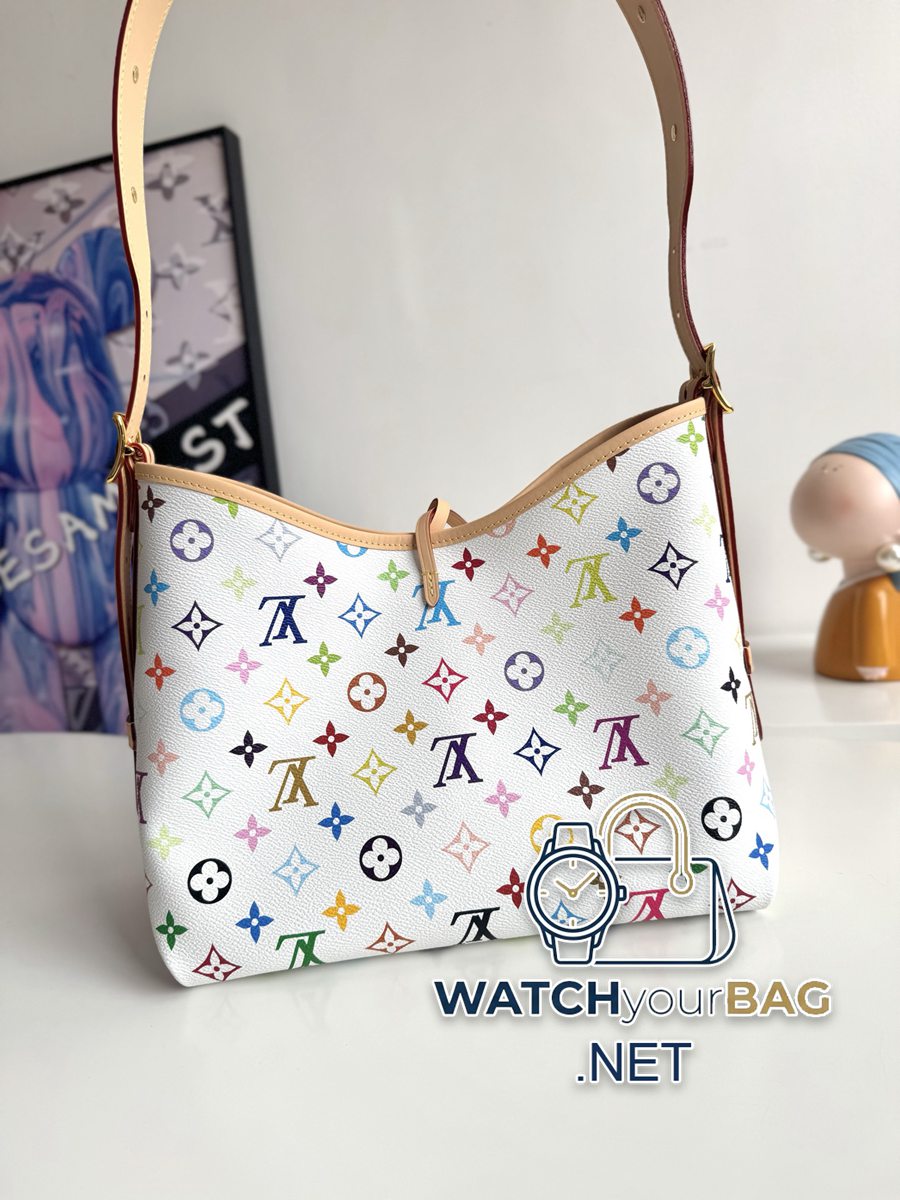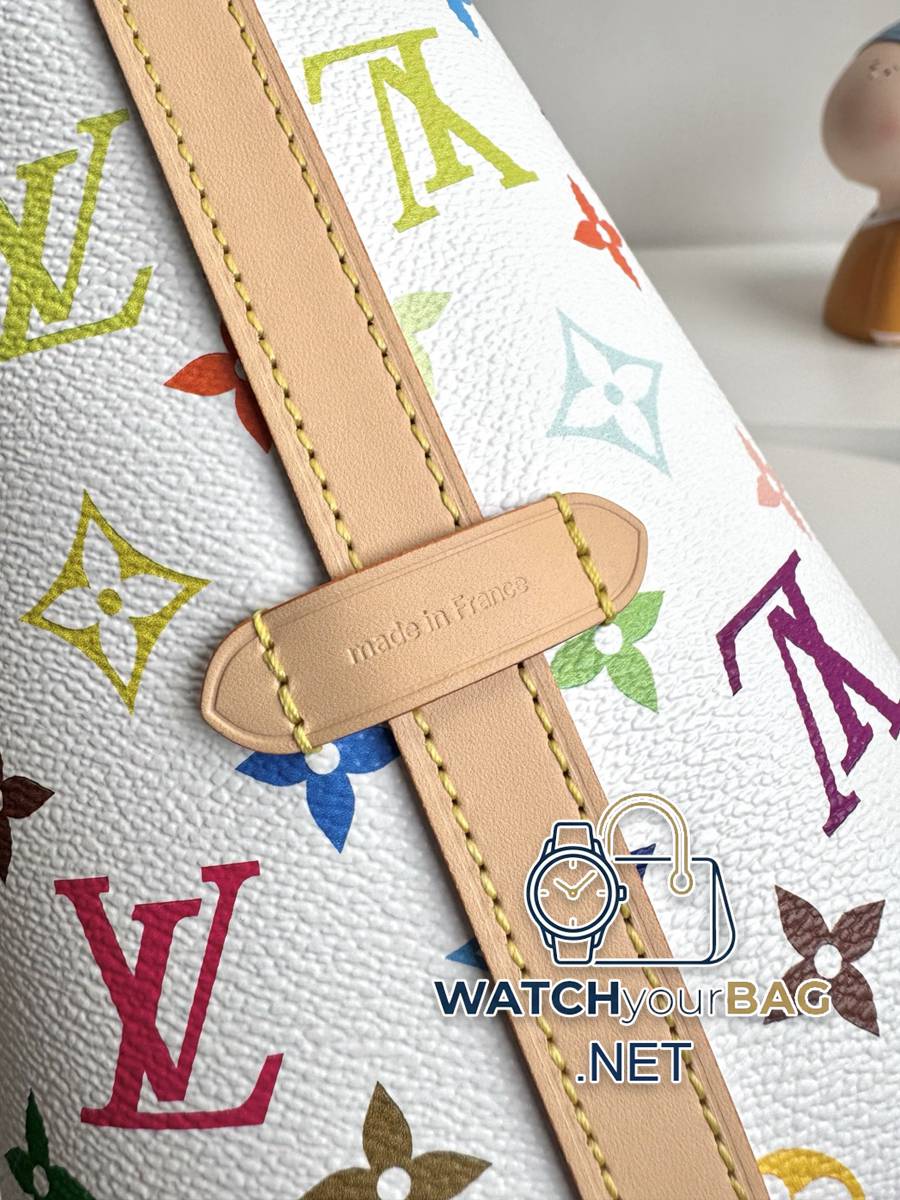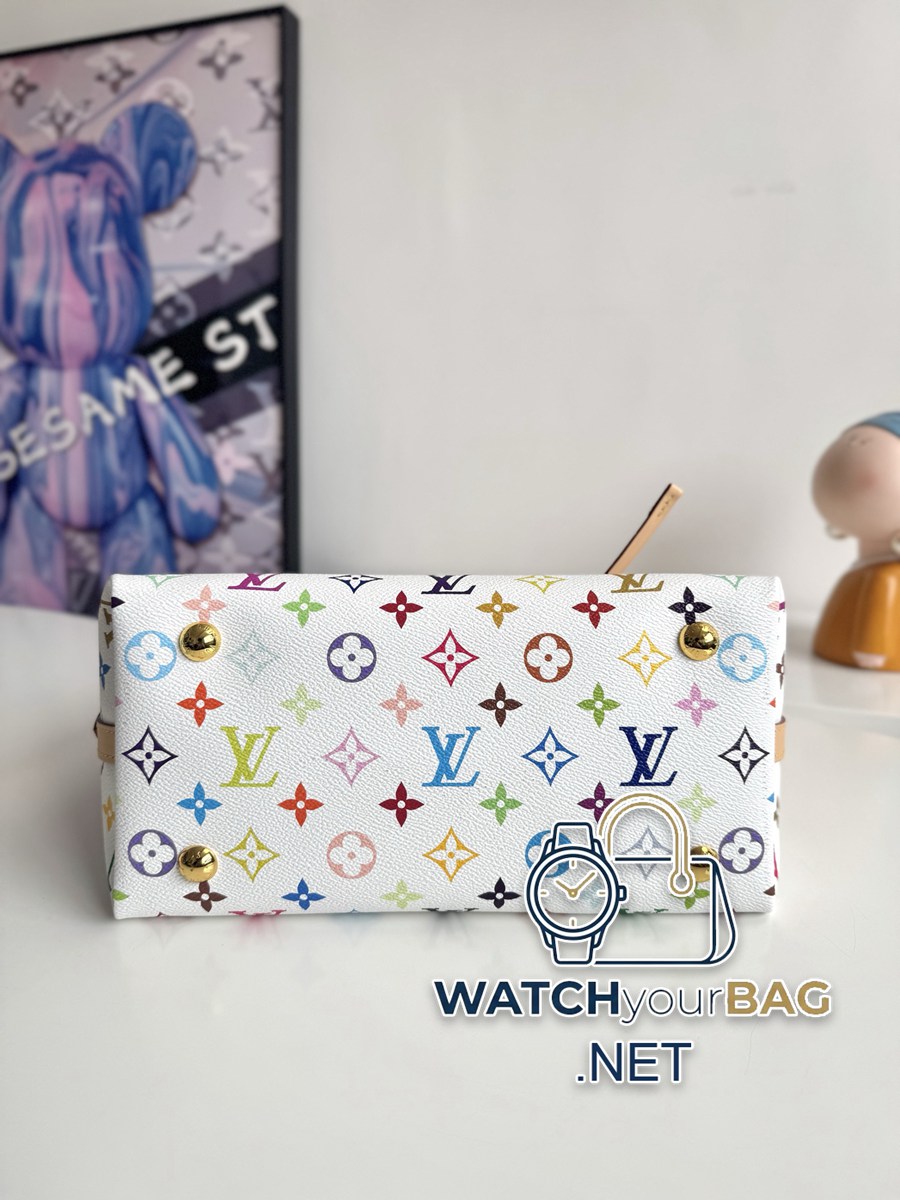 “163c dynamic chip with counter packaging” Exclusive real shot of overseas original order M13661! Part of the Louis Vuitton x Takashi Murakami reissue collection, this small CarryAll bag is made of Monogram coated canvas subtly infused with the bright tones of the Japanese artist. Calf leather trim creates a figure-hugging fit, and a designer plaque details the elegant bow. Size: 29×24×12cm