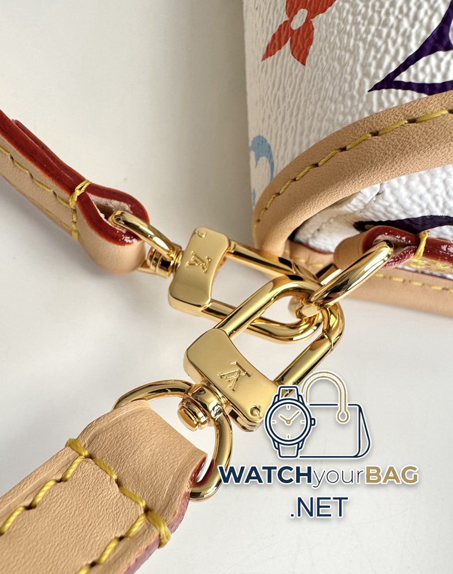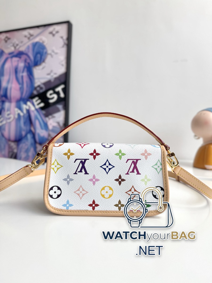 “163c dynamic chip with counter packaging” Exclusive real shot of overseas original M14194! This Nano Diane handbag is from the Louis Vuitton x Takashi Murakami collaboration series, with colorful Monogram patterns to express interest. Dazzling metal parts and cow leather trims highlight the classic style. The detachable and adjustable leather shoulder strap makes it easy to wear cross-body. The compact structure can store mobile phones, short wallets and other daily needs. Size: 19×10.5×6cm