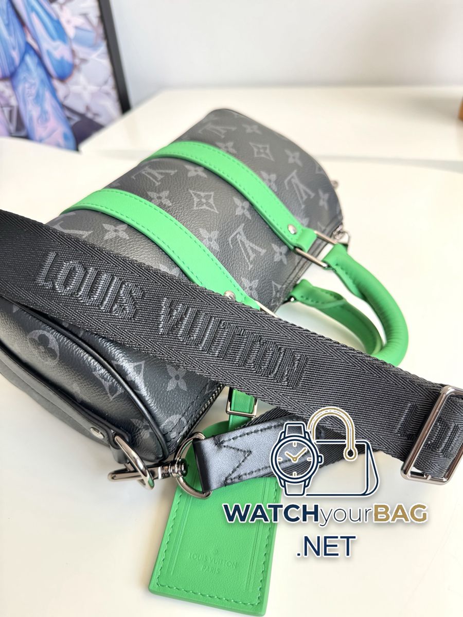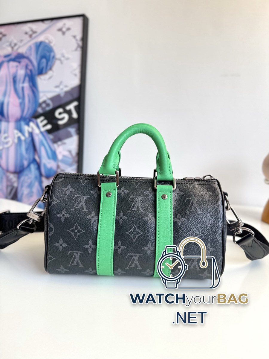 “With full set of counter packaging” Exclusive real shot of overseas original order M25885! The Keepall Bandoulière 25 bag has a modern feel in Monogram Eclipse canvas, with distressed hardware and bright leather side straps, handles and nameplate. The compact design is suitable for urban travel, and the rolled handles and removable and adjustable fabric shoulder strap allow for a variety of carrying options. Size: 25×15×11cm