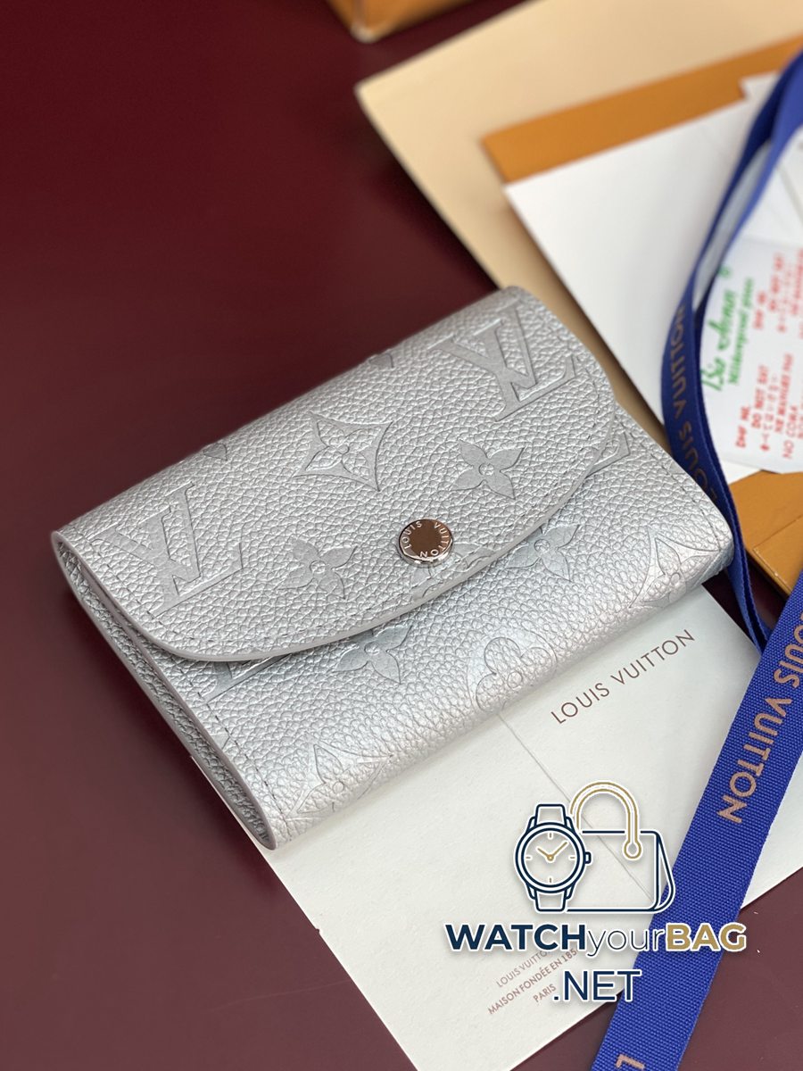 M26512 Pearlescent Silver! This Rosalie coin purse is made of Monogram Empreinte leather dipped in metallic tones, making it another trendy choice. Yingze metal parts cleverly light up the focus of attention, and the neat inner layer can properly store valuables. Size: 11X8X2.5cm.