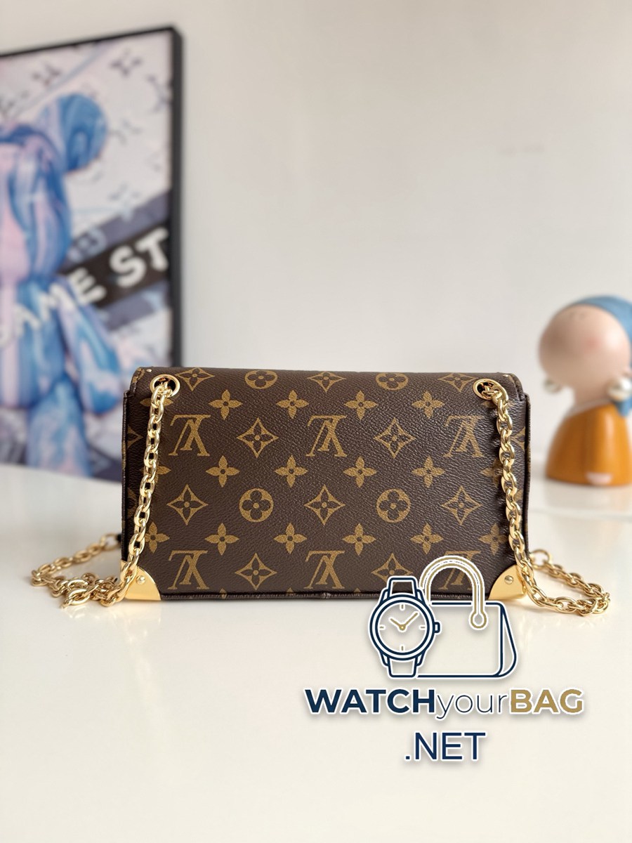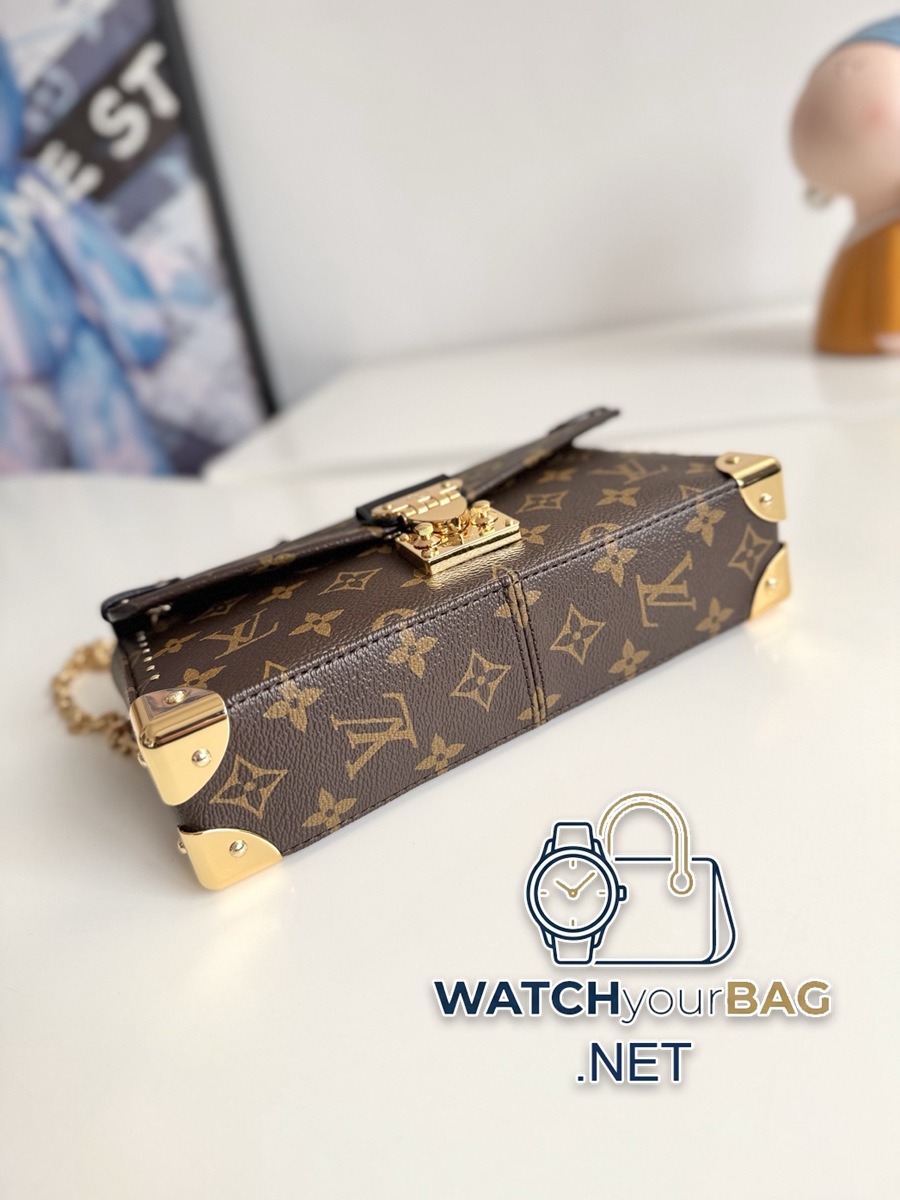 “163c dynamic chip with counter packaging” Exclusive real shot of overseas original order M27266! This East West horizontal version of the Trunkie bag retains the essence of the original while taking on an elegant baguette silhouette. The bag is made of iconic Monogram canvas, with leather locks, dazzling corners, studs and S-lock closures, paying tribute to the brand’s travel heritage. Equipped with a sliding chain, providing multiple carrying options. Size: 25×15×6cm