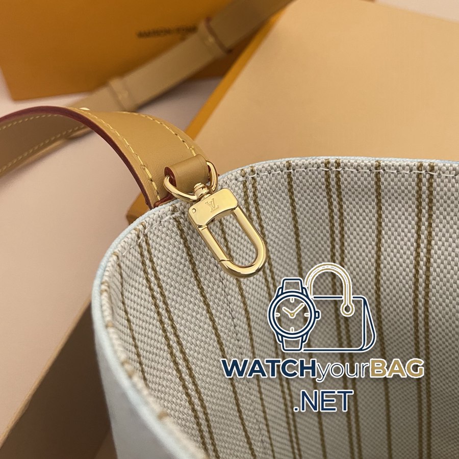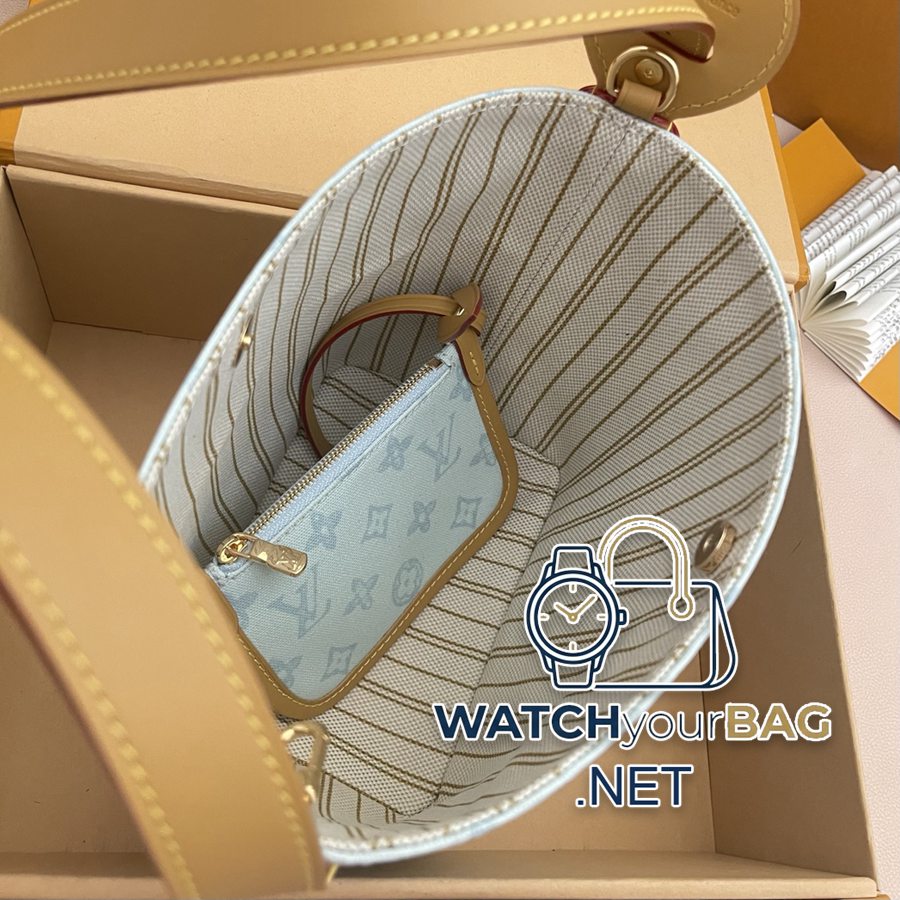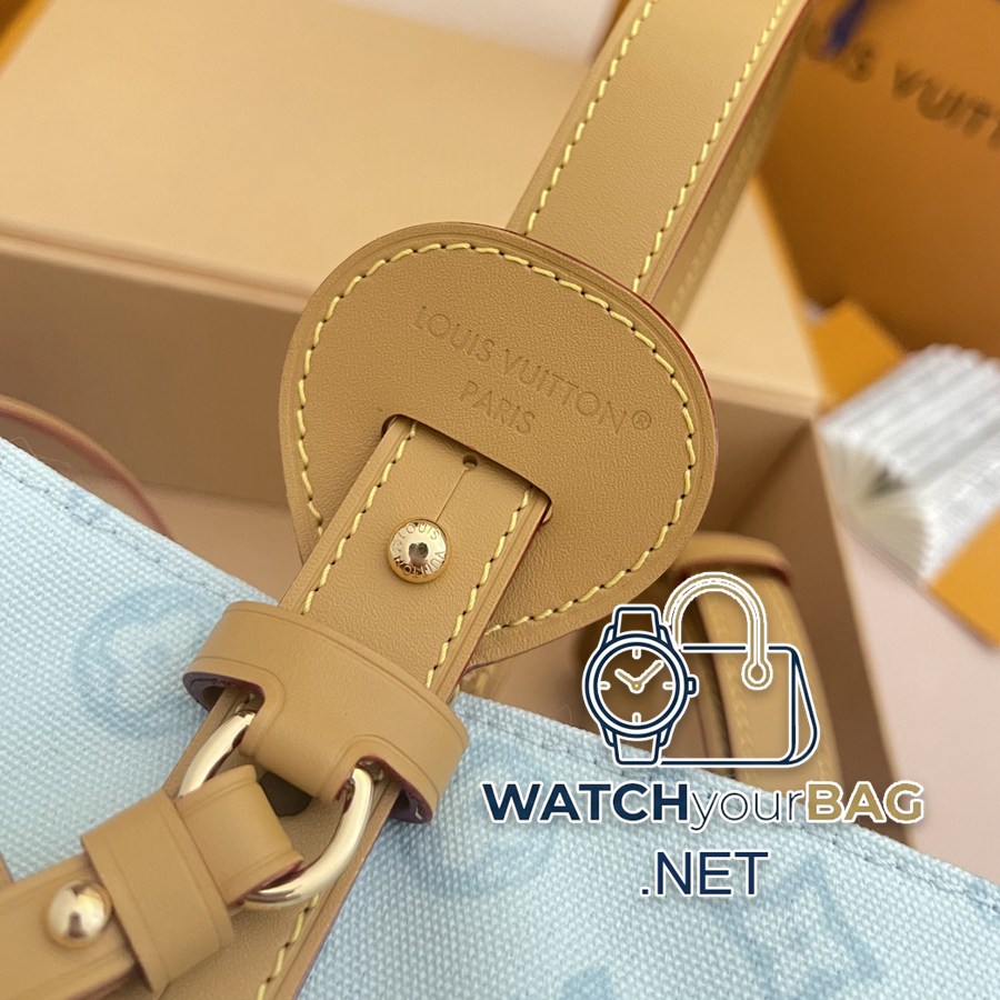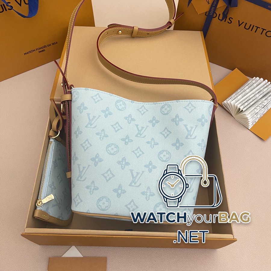 ALL IN BB Bucket Bag Model: Light Blue M27529 Apricot M28335❥ (Counter Synchronous Electronic 163C01 Transcoding Chip) This All In BB handbag celebrates the 130th anniversary of the Monogram pattern and reinterprets classic elements in a retro style. Monogram Origine canvas is trimmed with calfskin and is lined with striped fabric, while a padlock and Celebration address plaque add unique details. Zippered interior pocket can be used separately. Size: 16*12*18cm